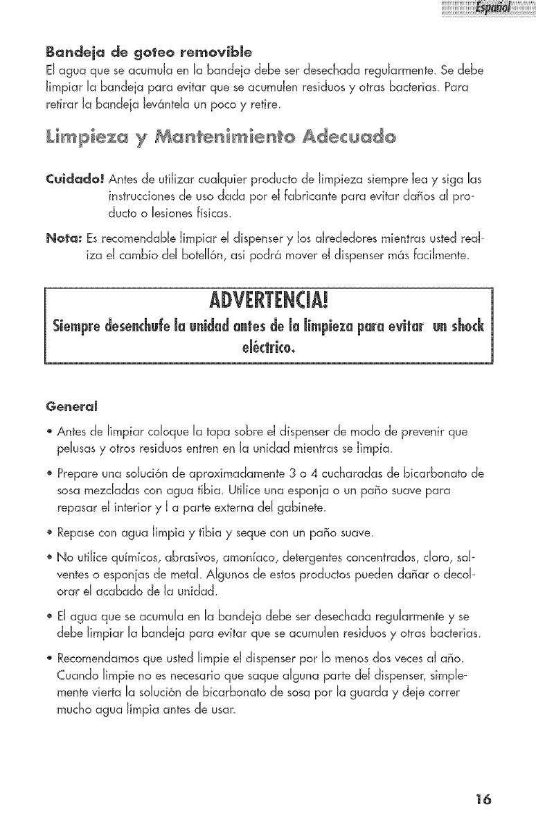 Nunca deie funcionar el dispensercuando sehaya acabado el agua, puede