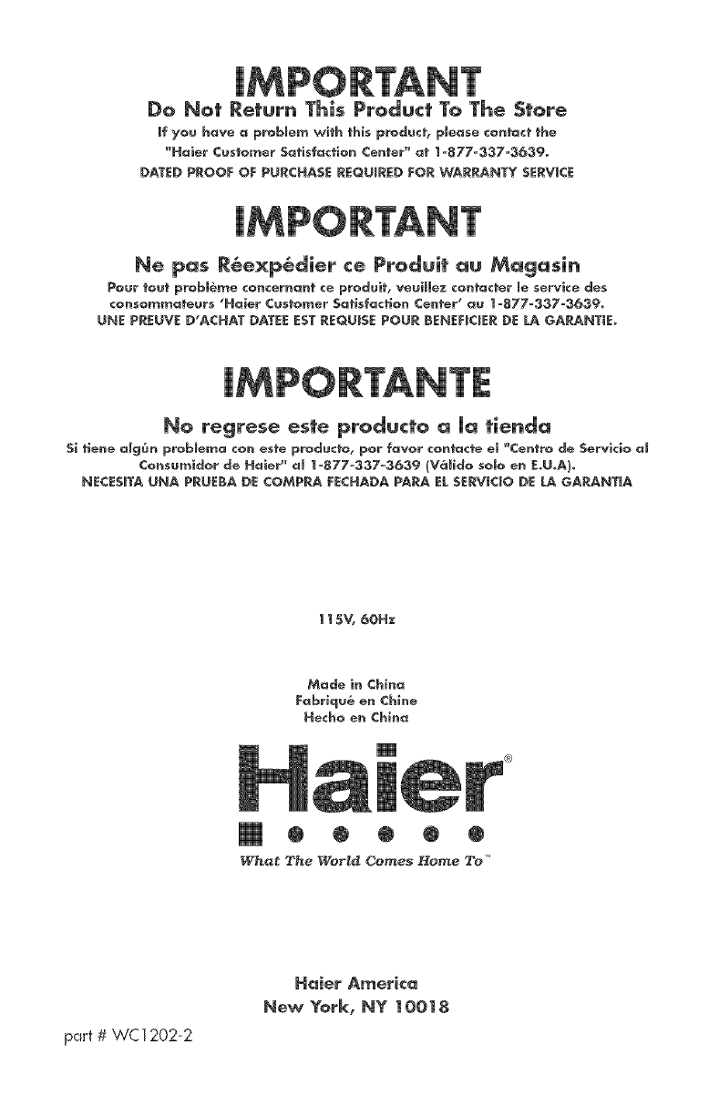 Thank you for purchasing our Haier