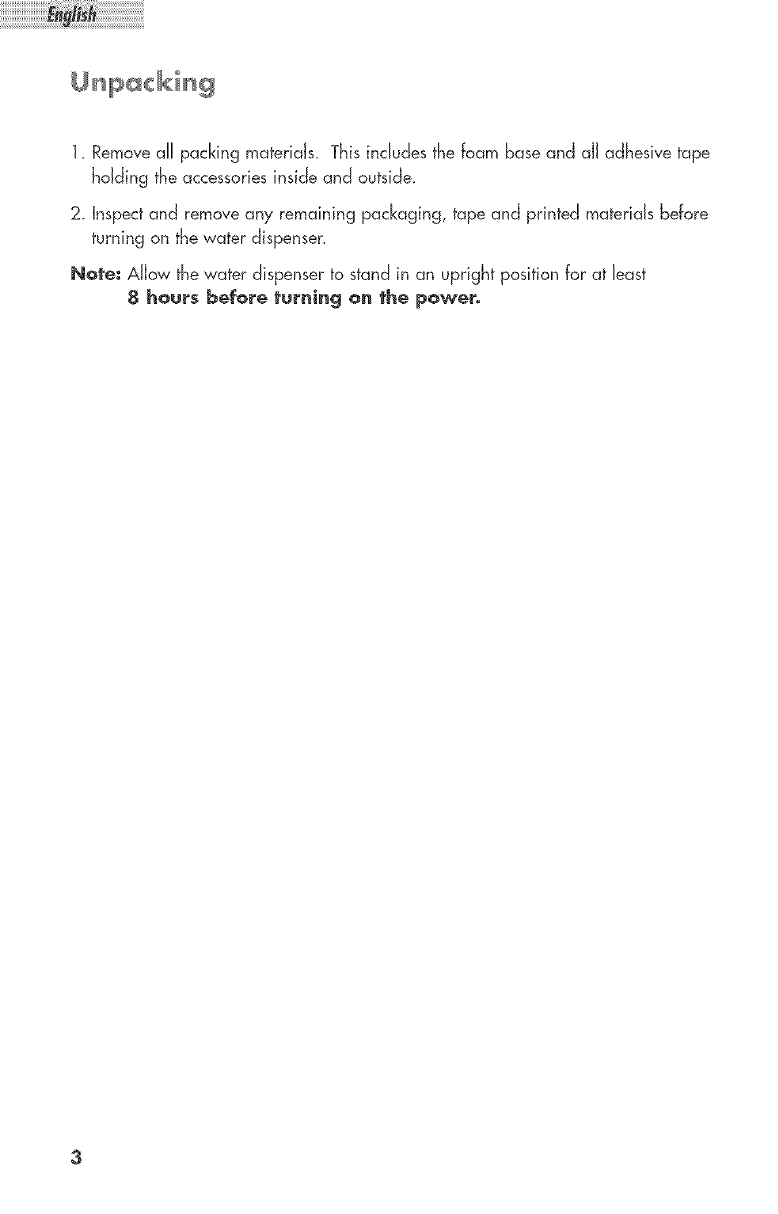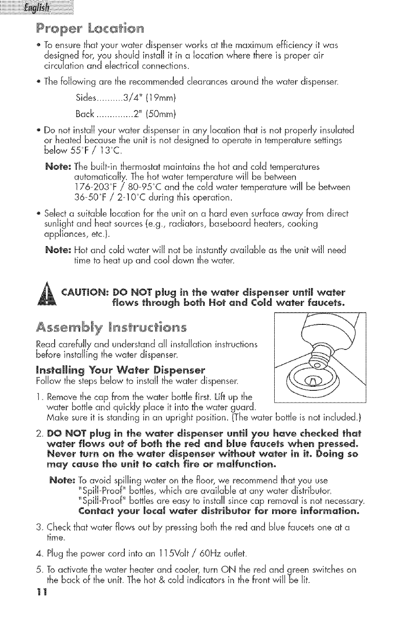 Note: AJJowthewater dispenserto standin an upright positionfor at Jeast