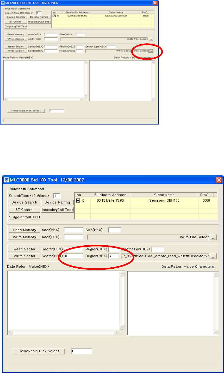 6. Click the ‘Read Sector’ button. (The below is an example when succeeded)