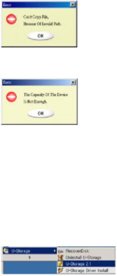 1) As shown below, select Start → Programs → U-Storage → Recover Disk on your