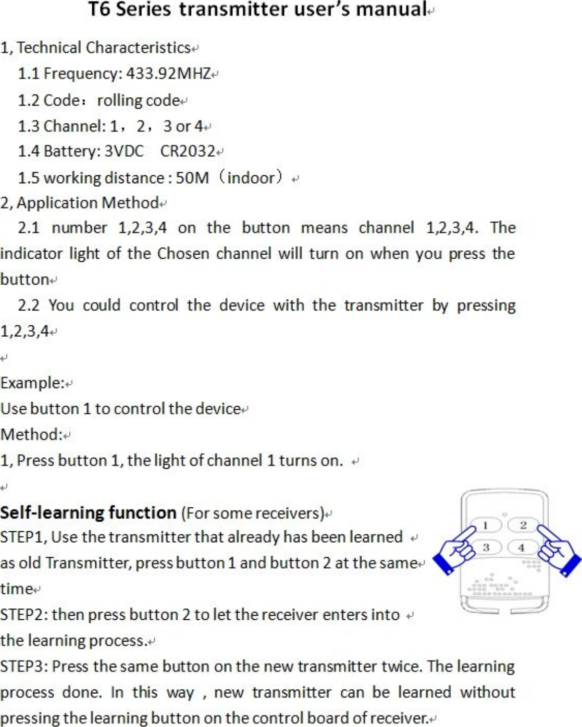 HANGZHOU HILAND TECHNOLOGY T6XXX2015 Transmitter User Manual