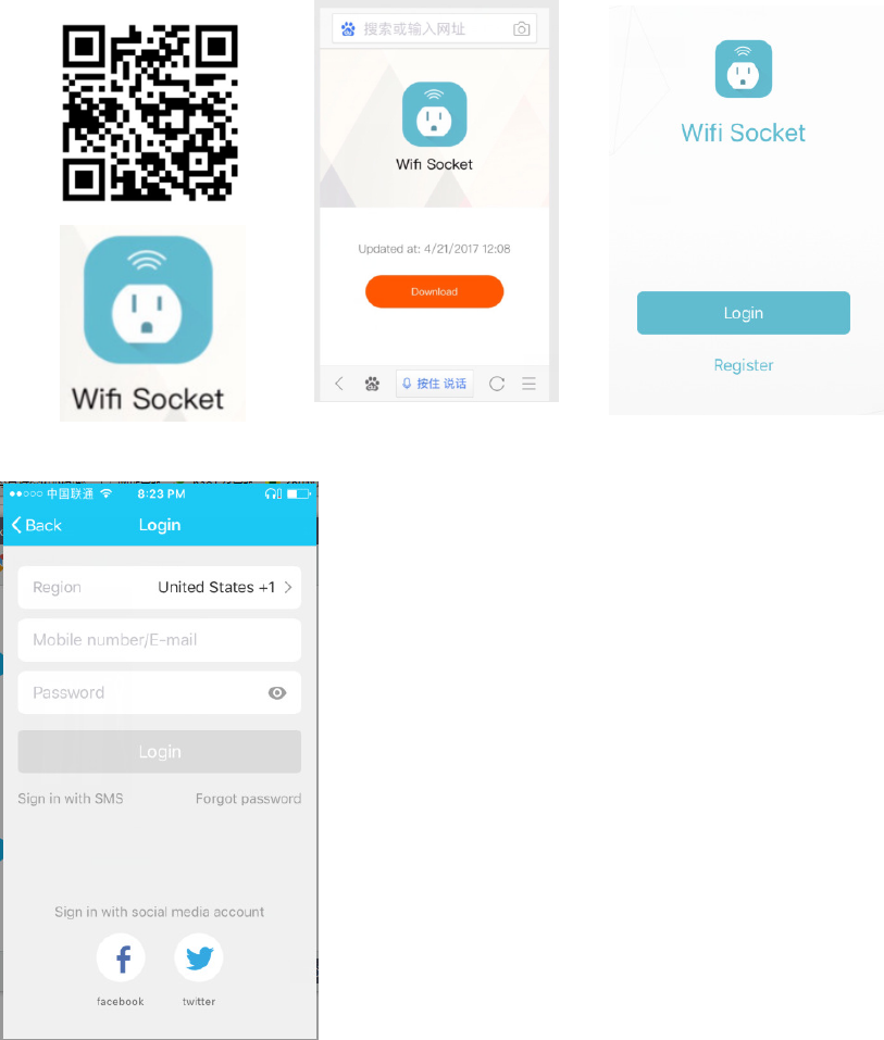 Use your phone to scan the QR code below or search “ wifi Socket” in