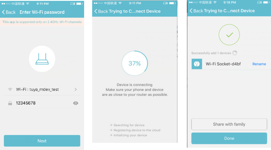 2、For quick connect mode, the App interface will go through the changes during the network