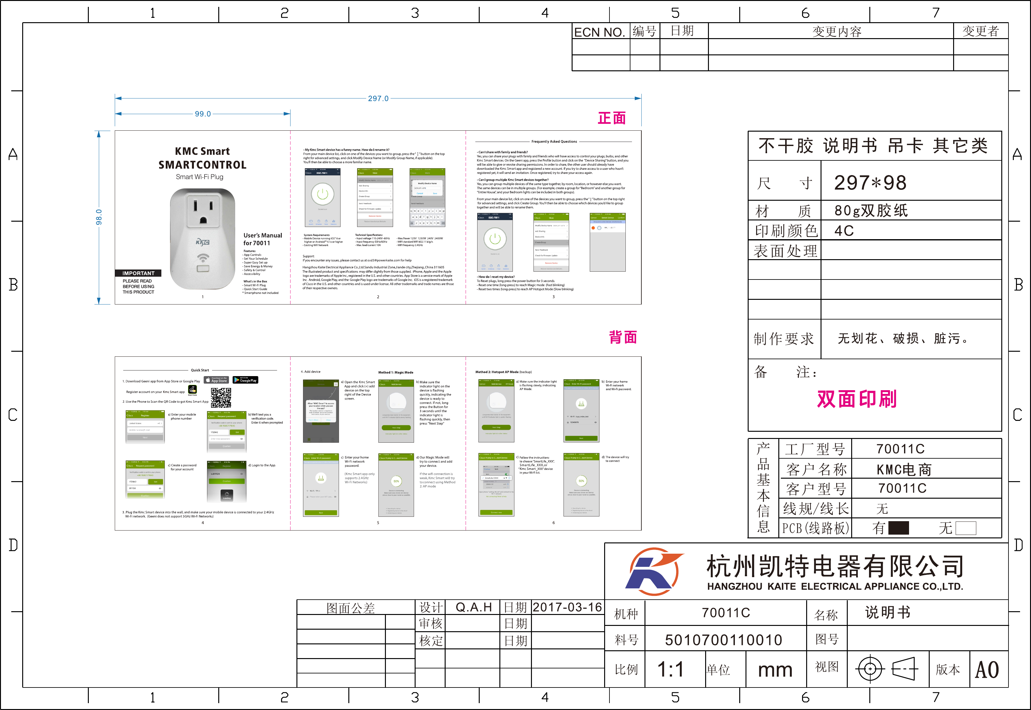 HANGZHOU KAITE ELECTRICAL APPLIANCE 70011-2 Smart Socket WiFi User Manual 1