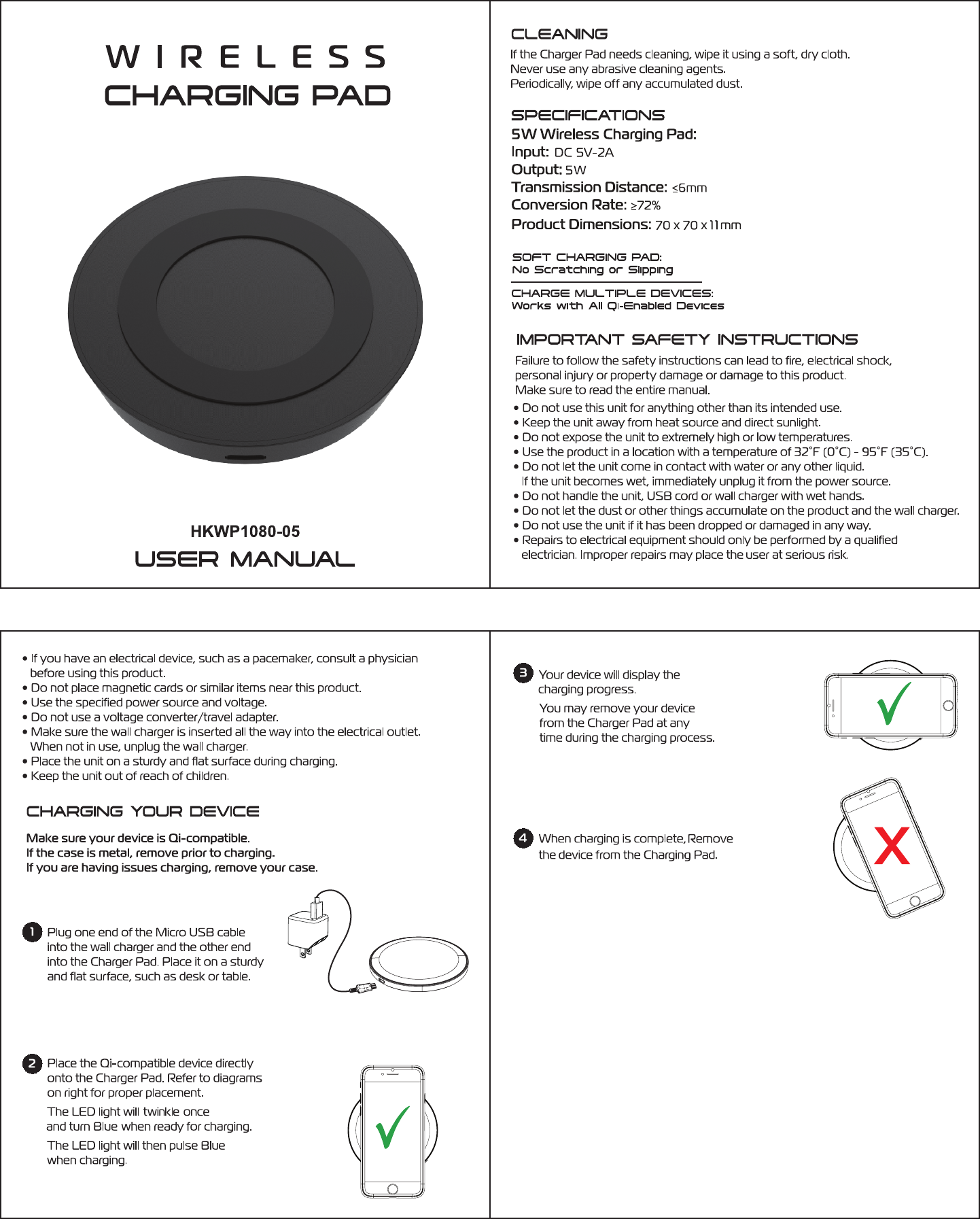 HANK ELECTRONICS 1080 Wireless Charging Pad User Manual 1080