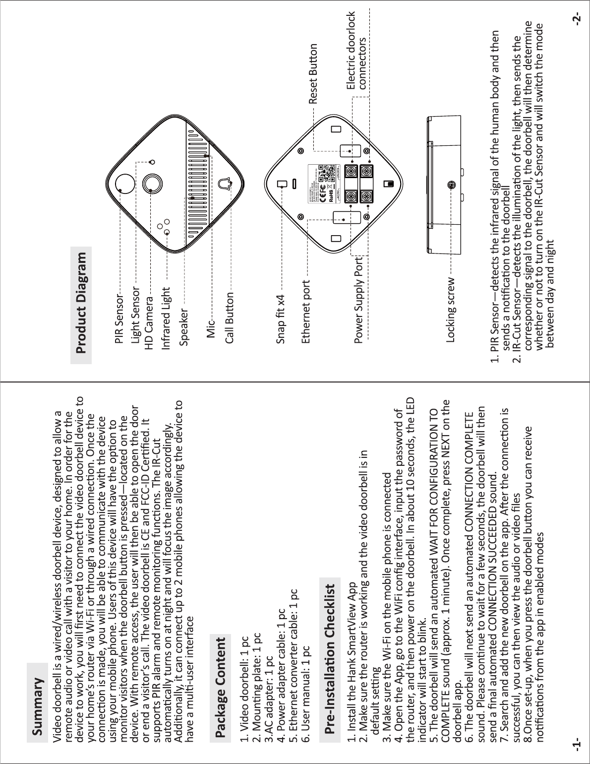 HANK ELECTRONICS CO., LTD. Video Doorbell Users manual