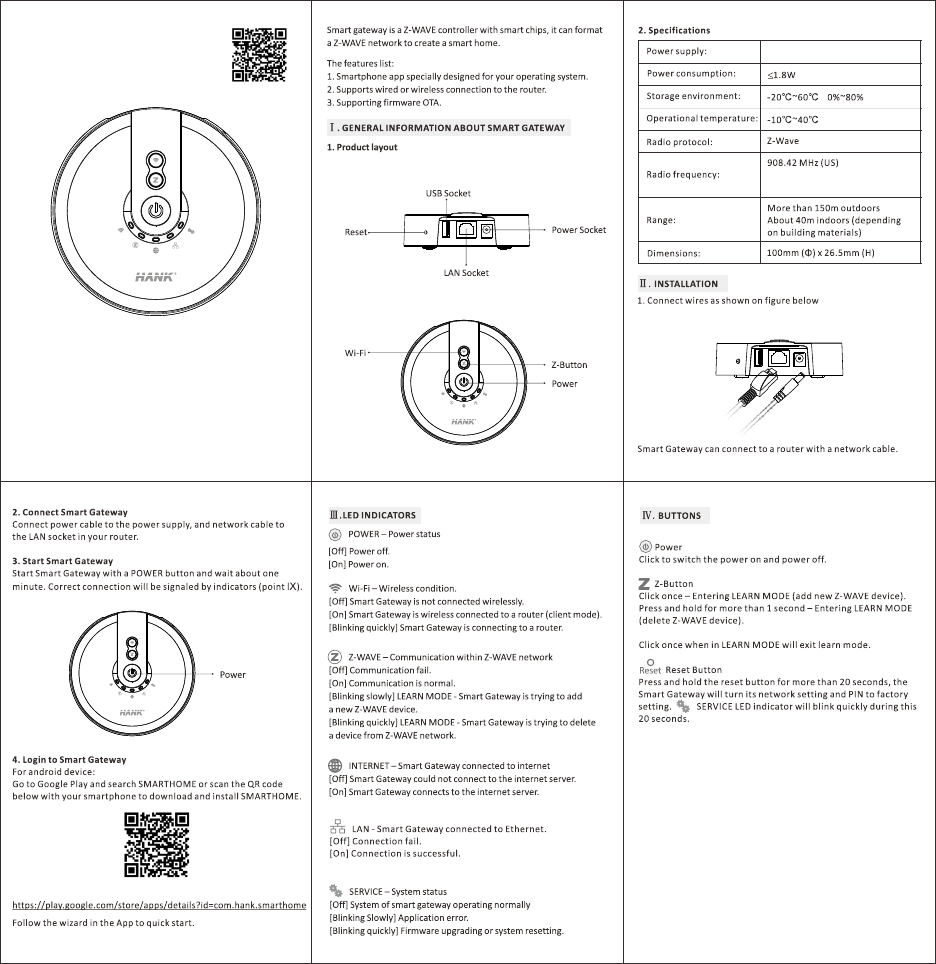 HANK ELECTRONICS CO., LTD. Z-Wave Gateway