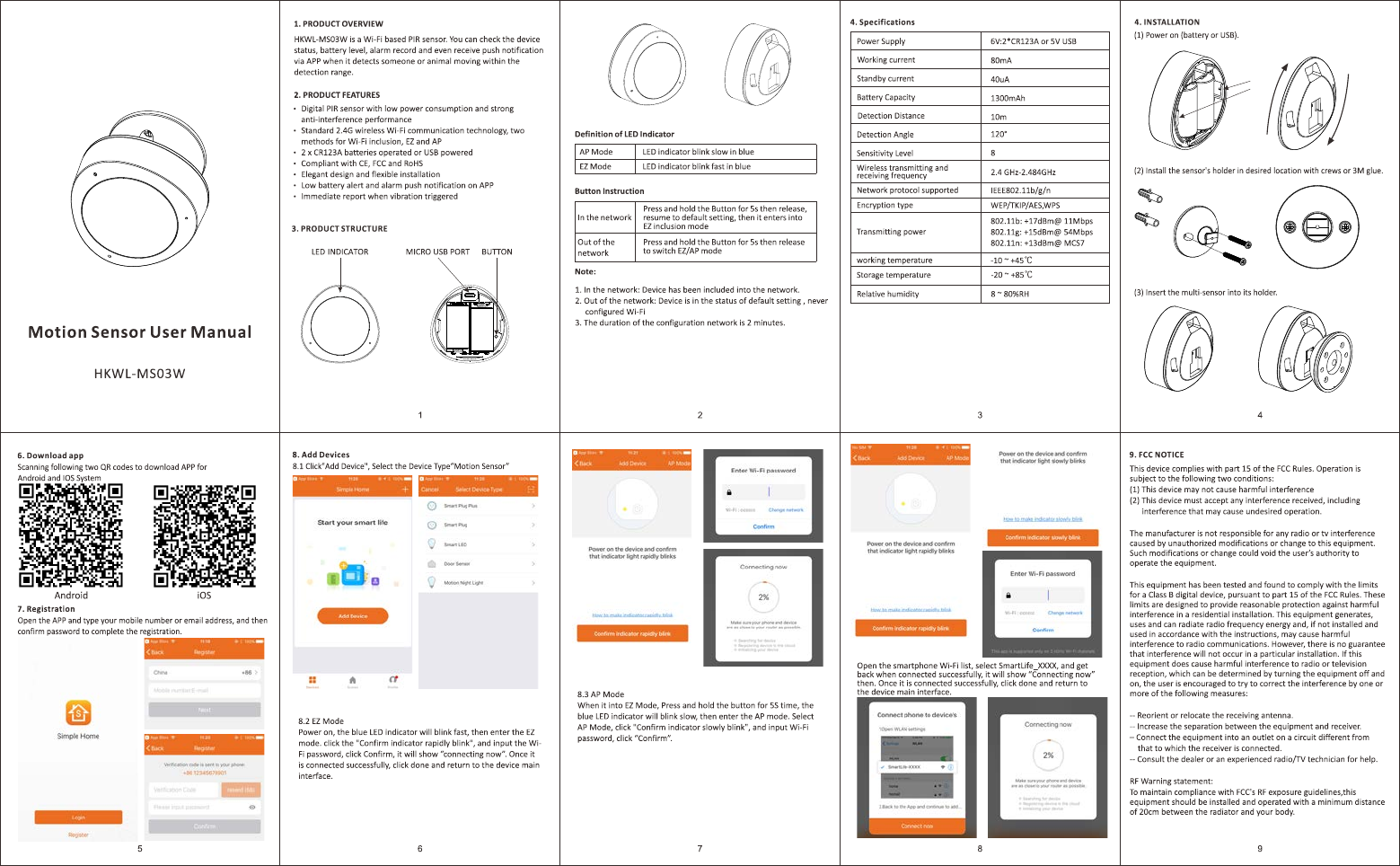 HANK ELECTRONICS CO., LTD. Motion Sensor HKWL MS03W