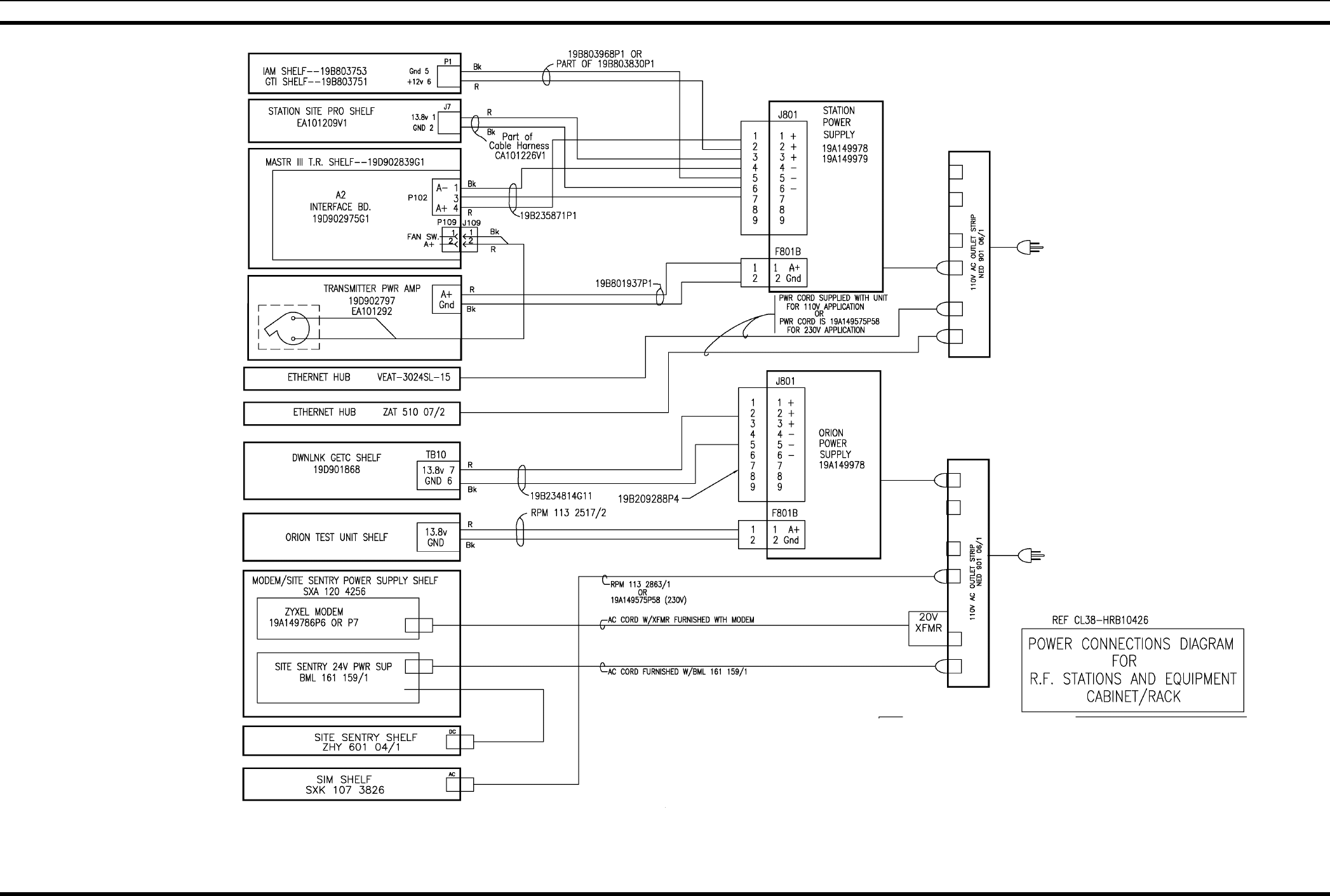 POWER CONNECTIONS DIAGRAM FOR R.F. STATIONS AND EQUIPMENT CABINET/RACK