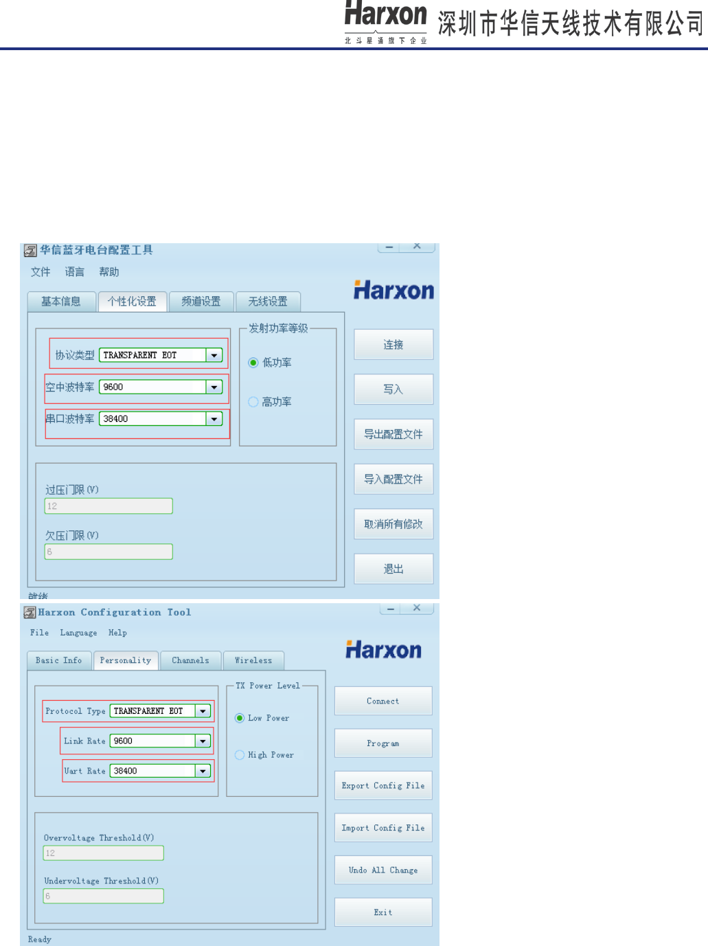 Data protocol:TRANSEOT,Link rate:9600,Radio mode:Transceiver.