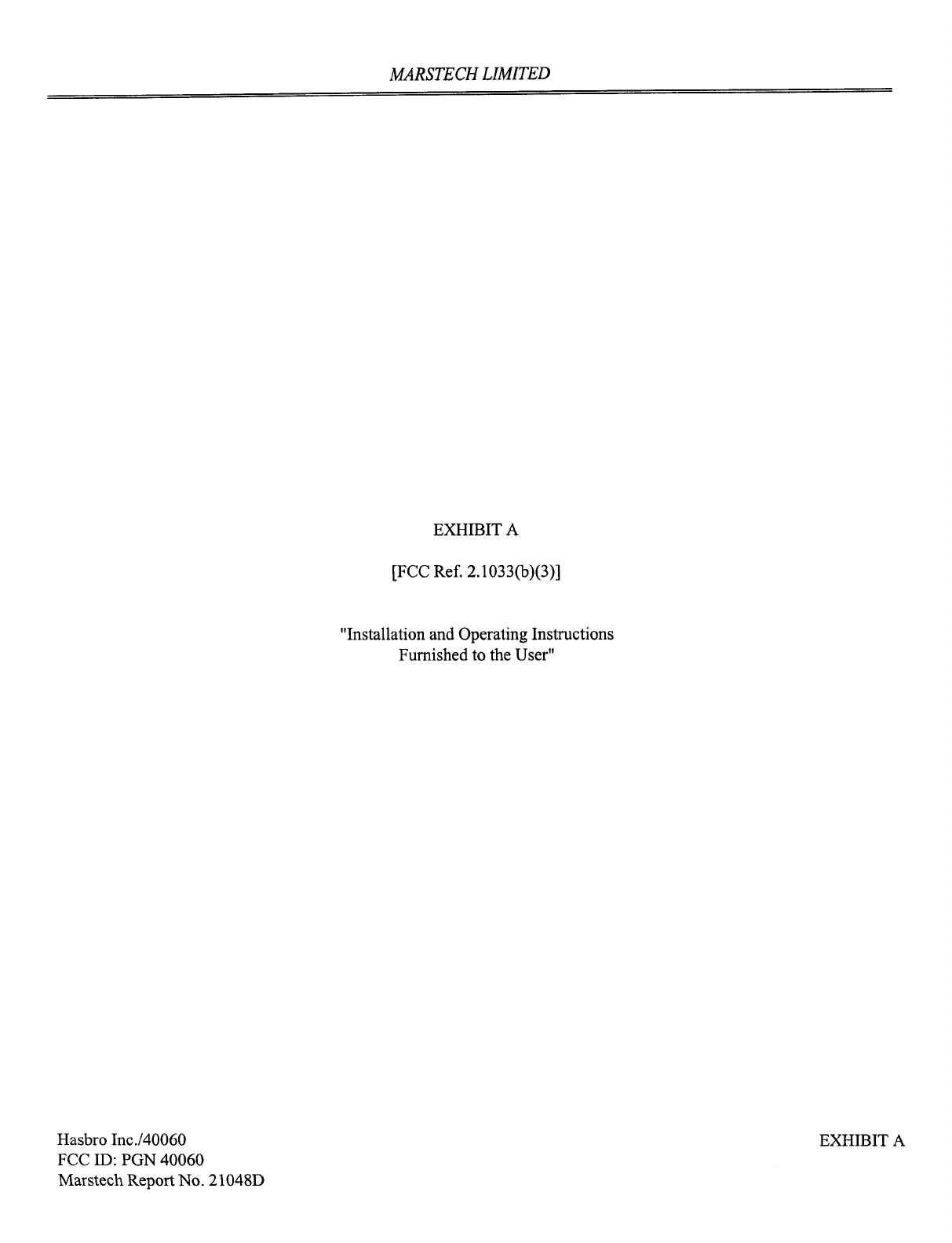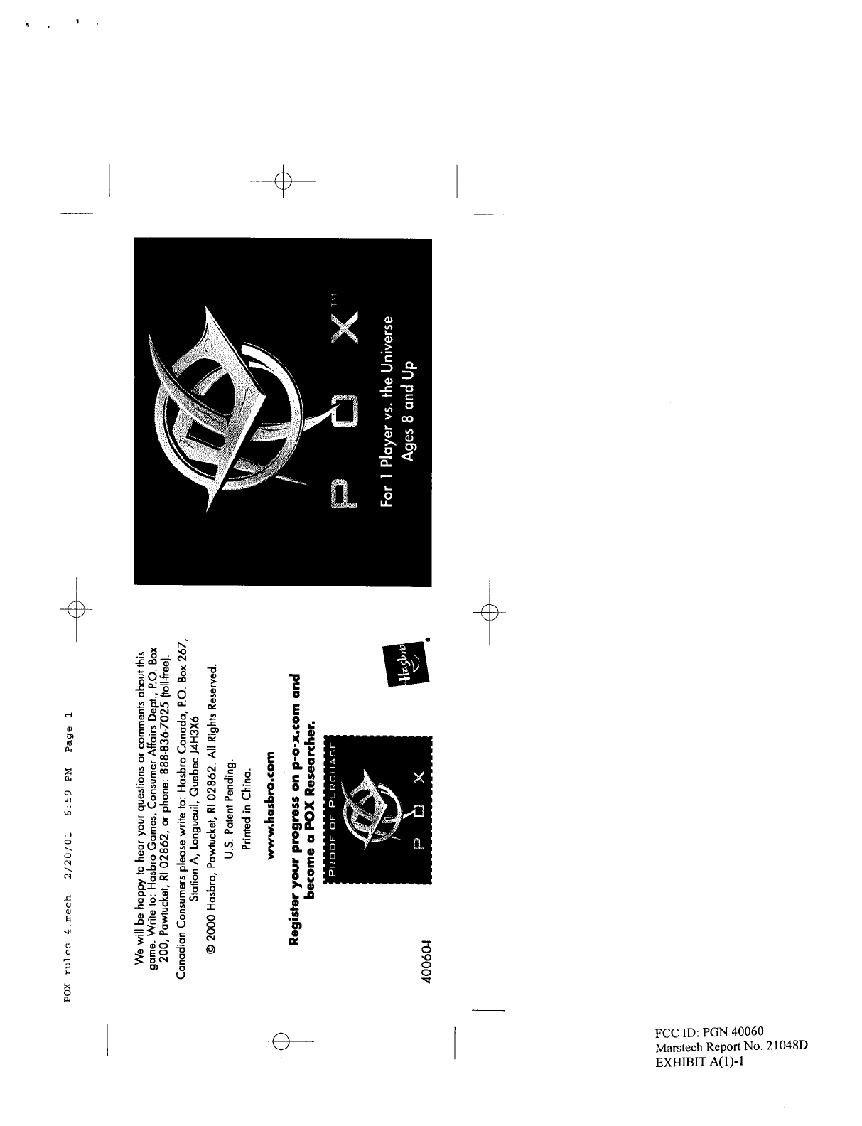 HASBRO 40060 Battery Operated Elect. POX User Manual users manual
