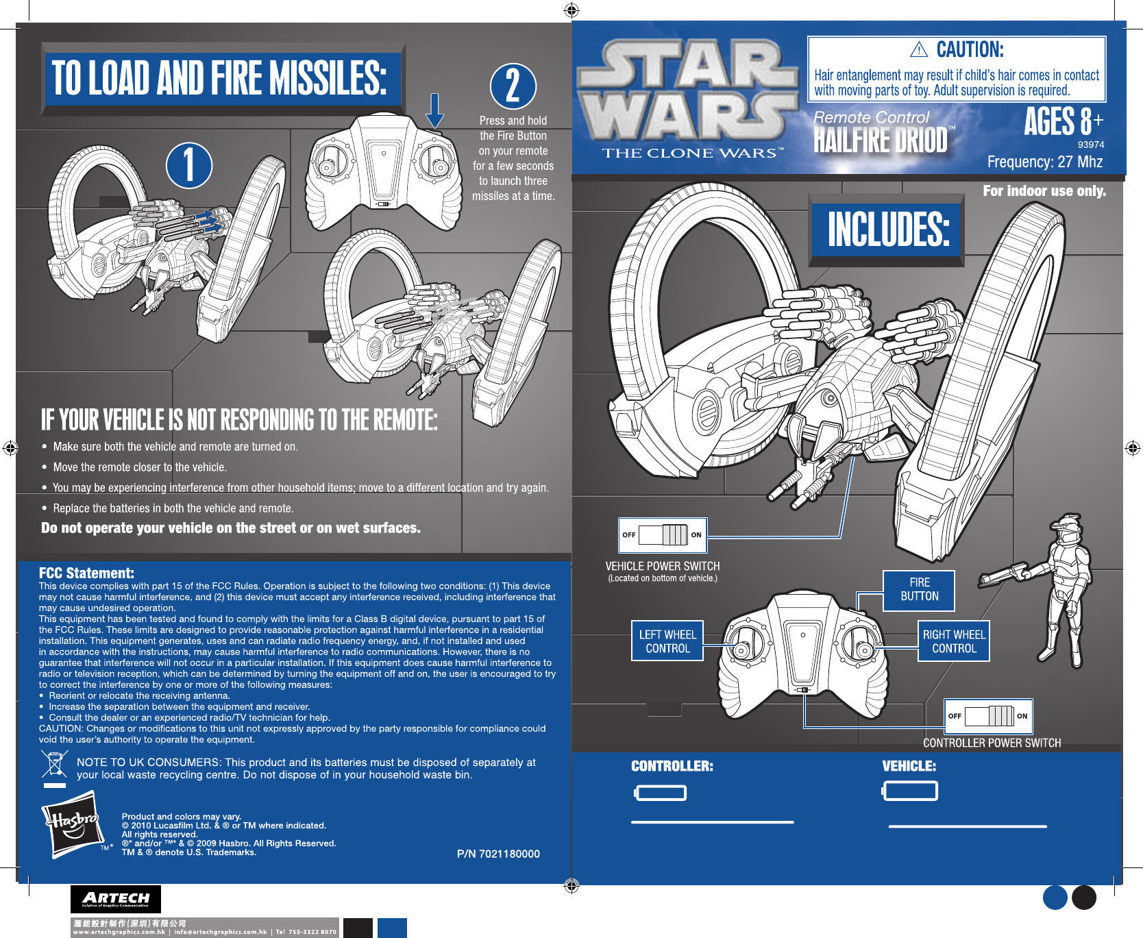 HASBRO INC. SW Hailfire Droid RC Vehicle Users Manual
