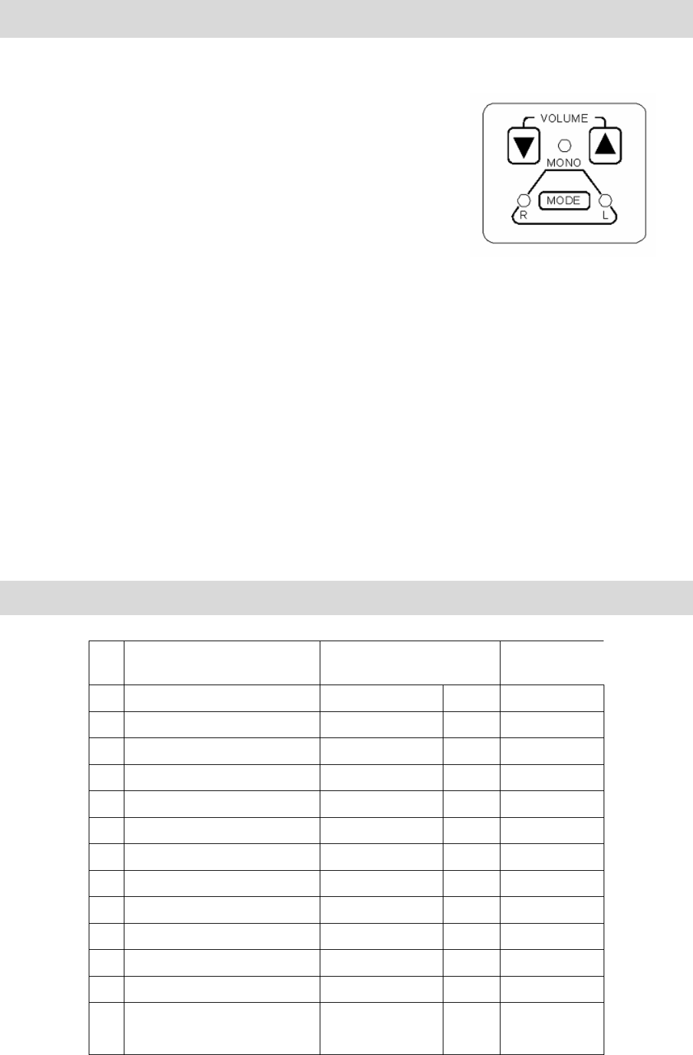 6. User can press “MODE” button 2-3second to select left/right channel and mono channel. The order as follow: