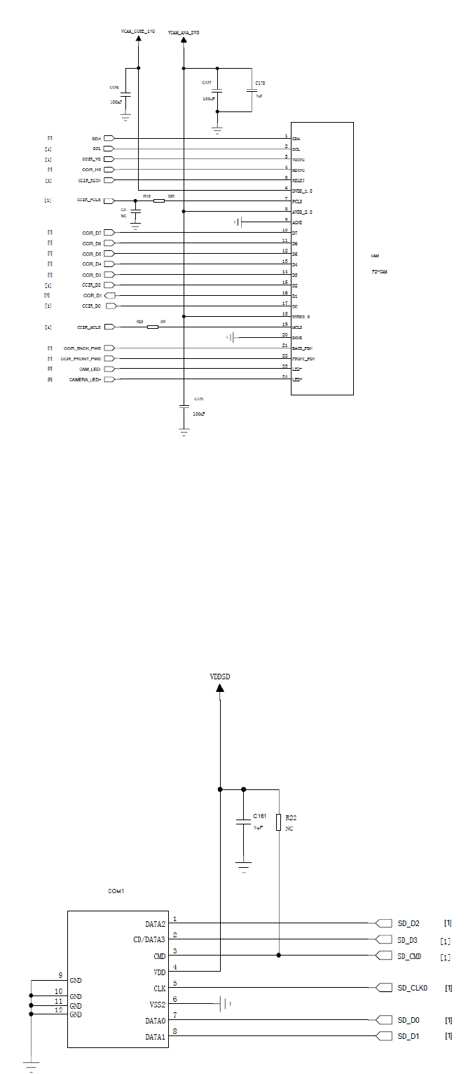 to the main chip’s camera interface directly. The main camera’s power supply is provided by