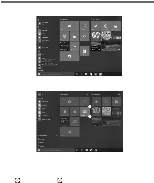 If you want to pin more application programs on the Start interface, press and