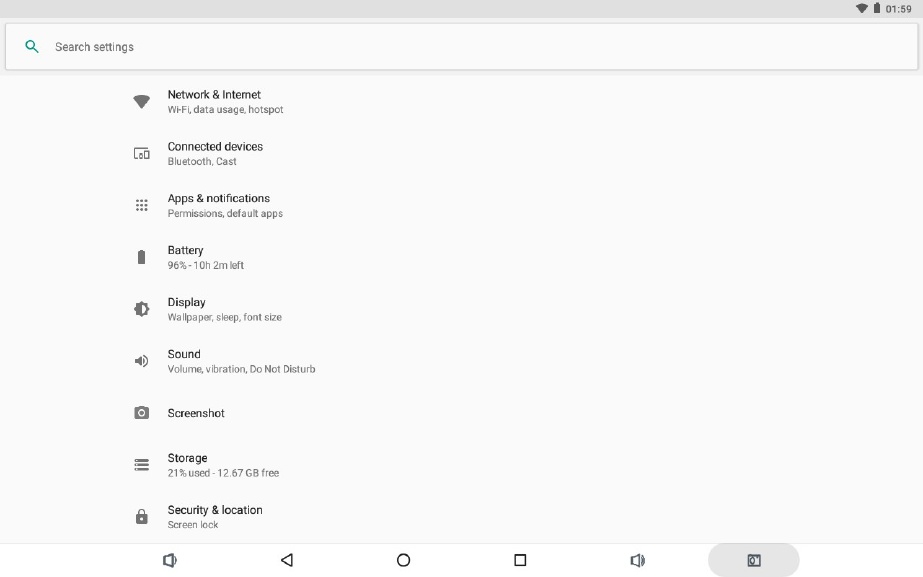 a. In the home screen, tap the launcher Tab and then touch Settings to show the settings menu.