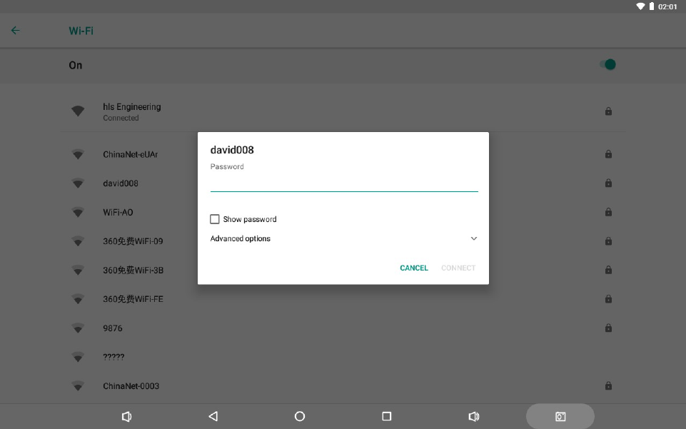 If the network is open, the tablet will prompt you to confirm connection to the network. Touch Connect to confirm.