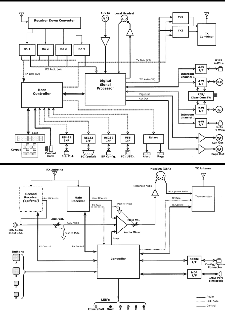 Base stations can be configured with up to four receivers and two transmitters, supporting up to four Beltpacs in