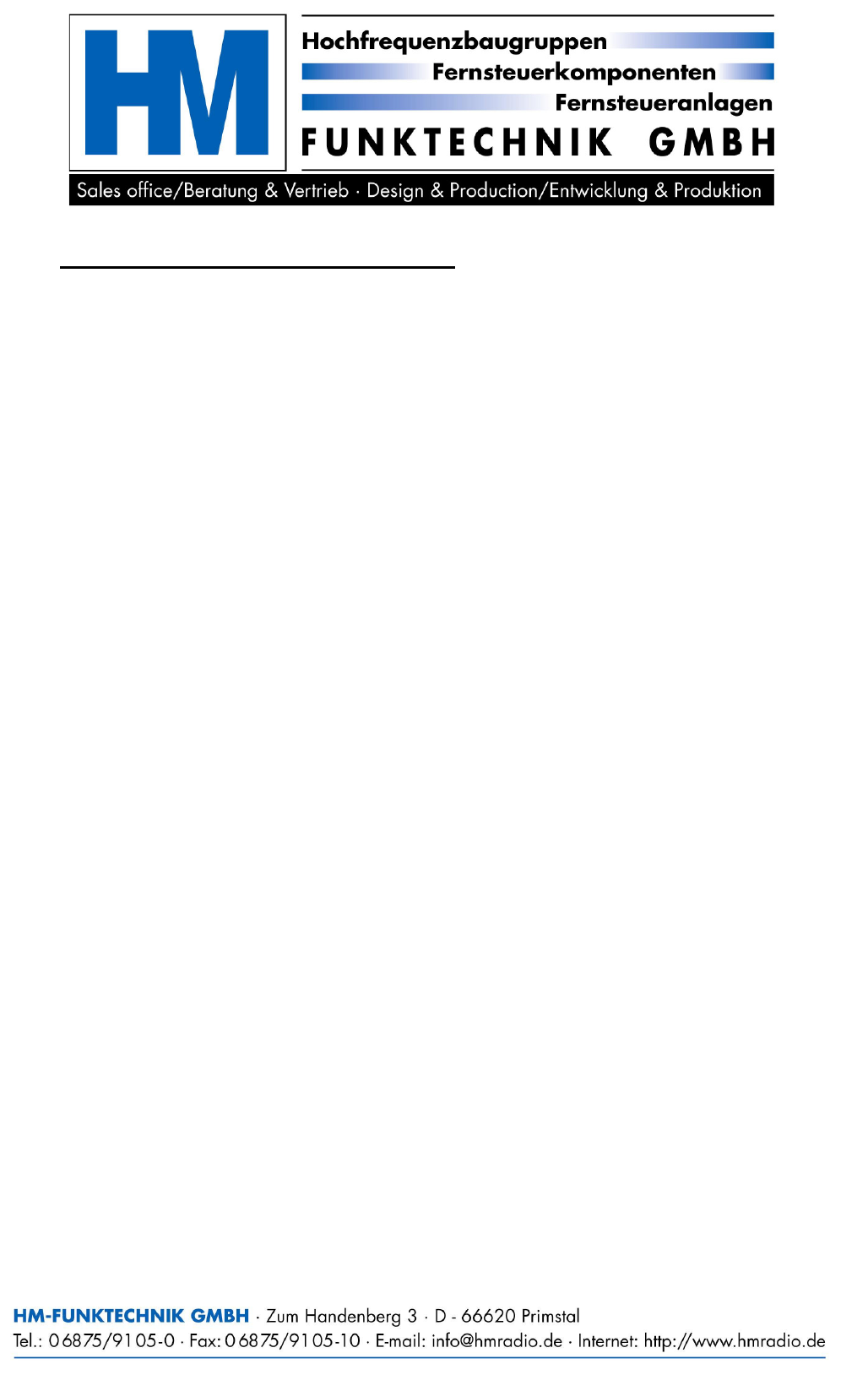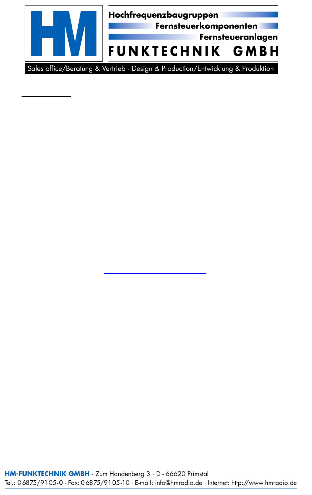 For any further question, comments or advices, please contact HM-Funktechnik at