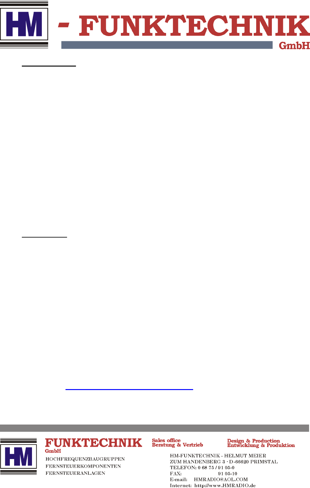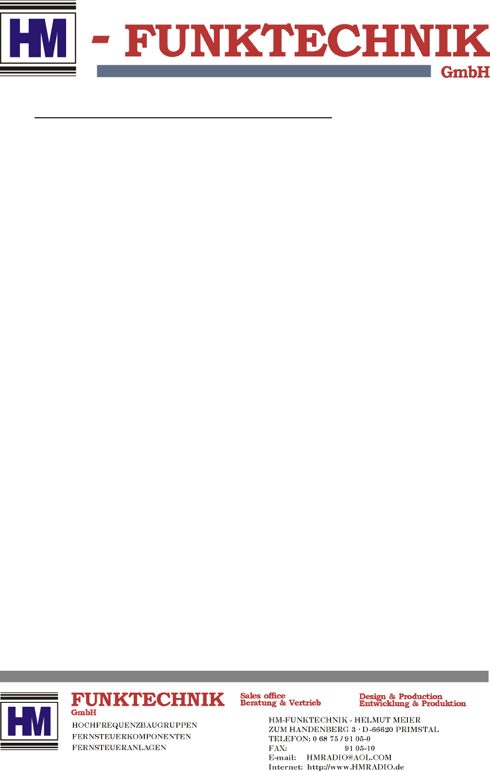 For any further question, comments or advices, please contact HM-Funktechnik at