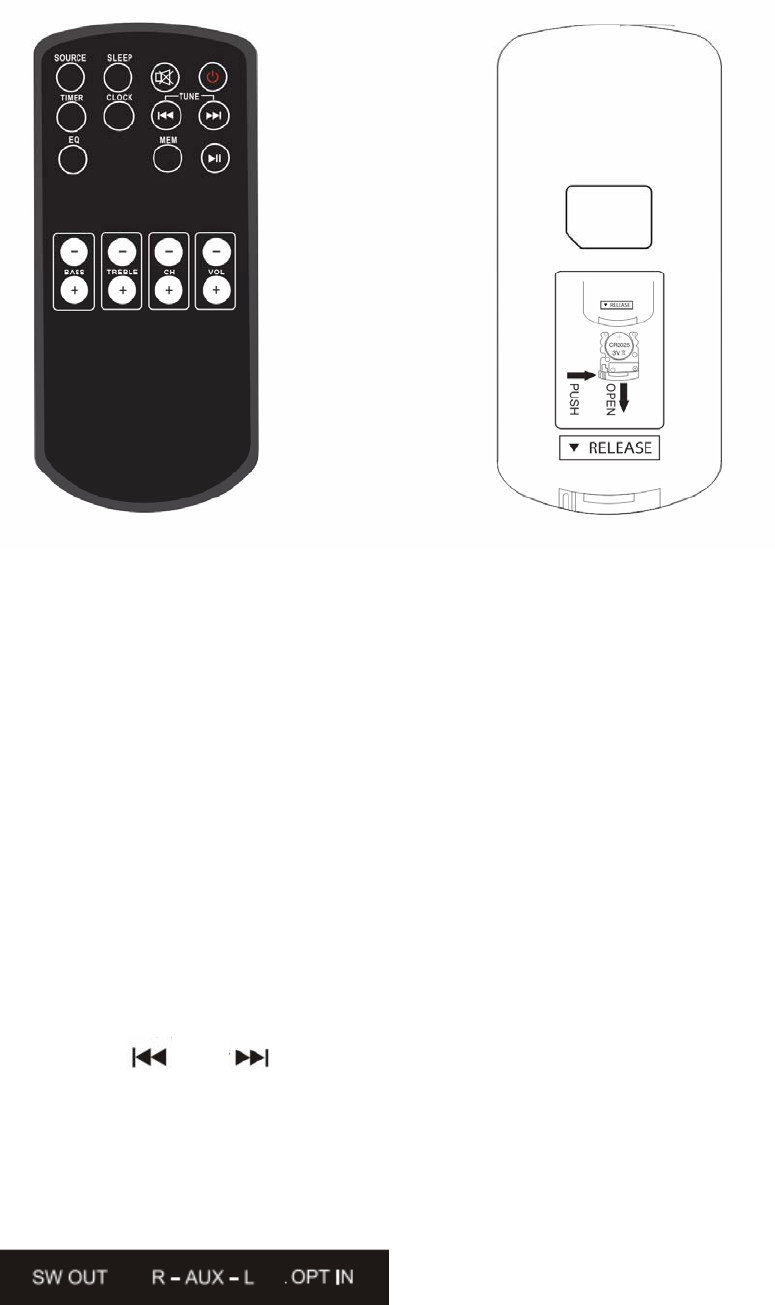 16、TUNE(”or“ )----TUNE FM RADIO In the FM mode;(p REV or next)