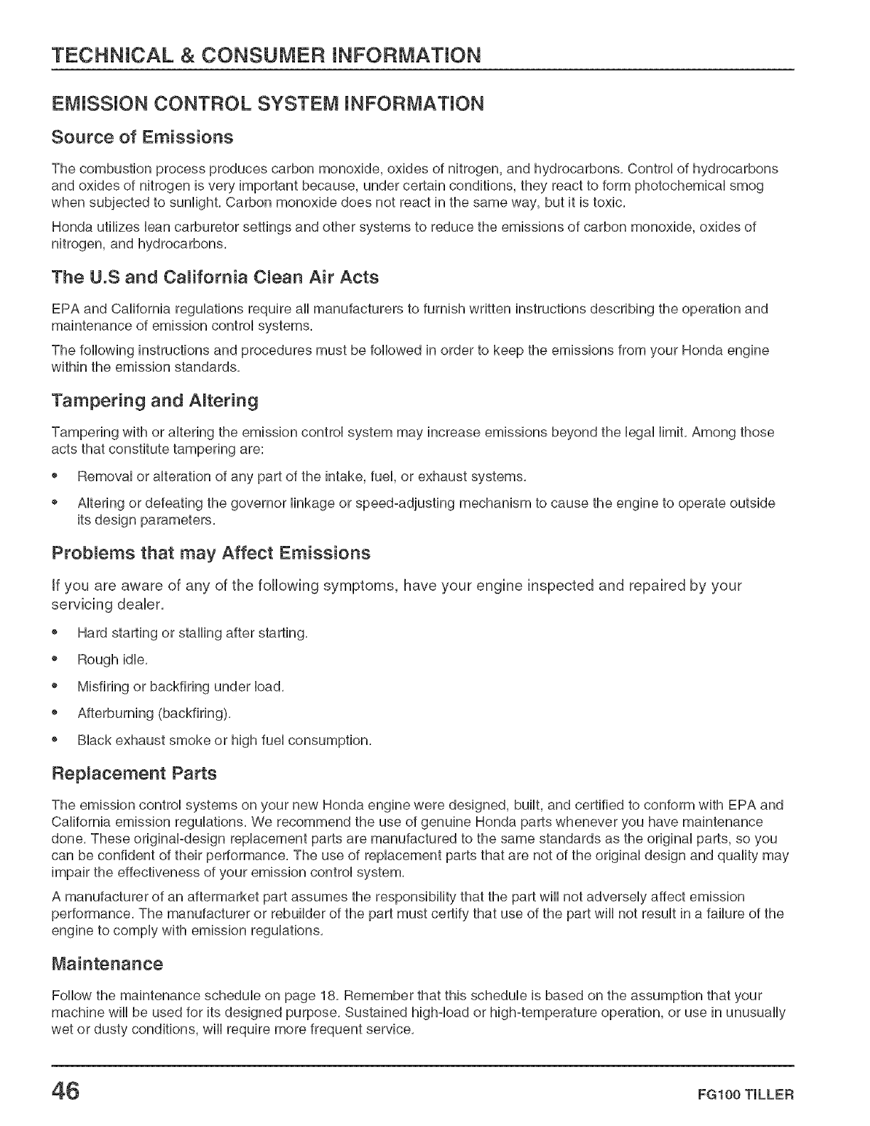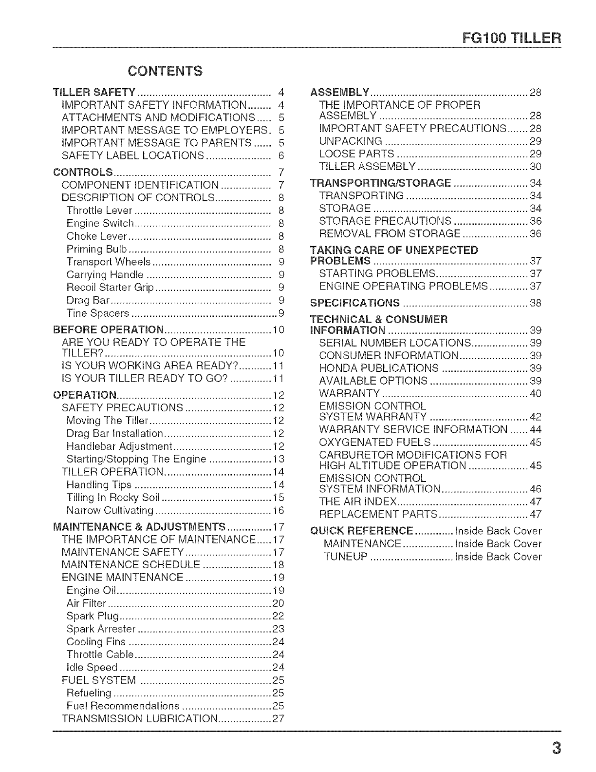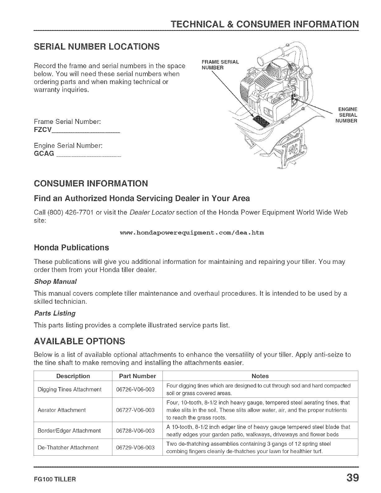 Congratulations on your selection of a Honda Harmony FG100 Tiller. We are certain you will be pleased