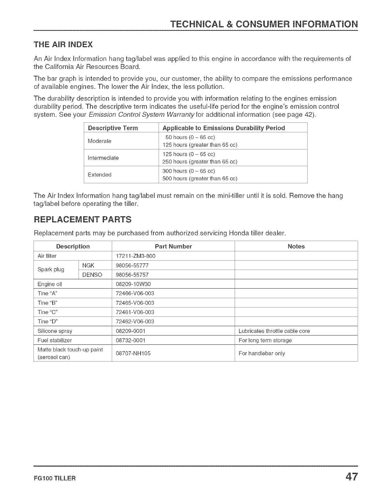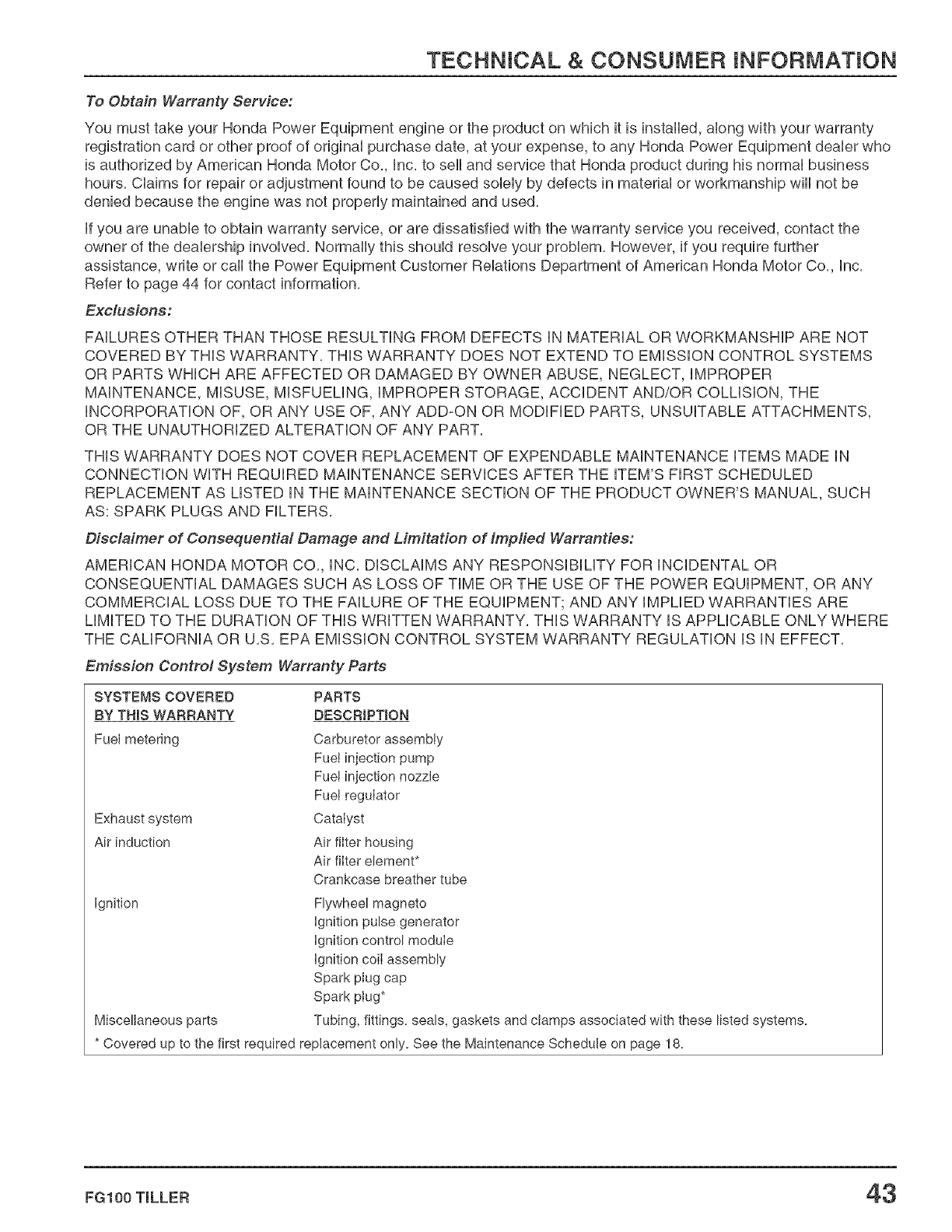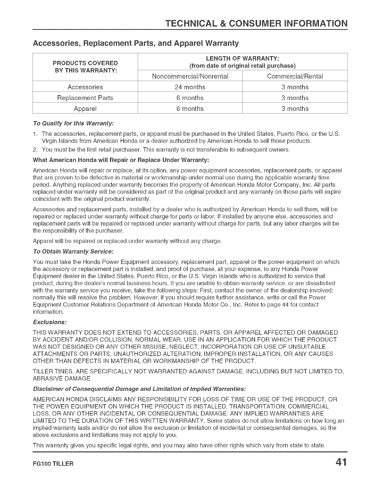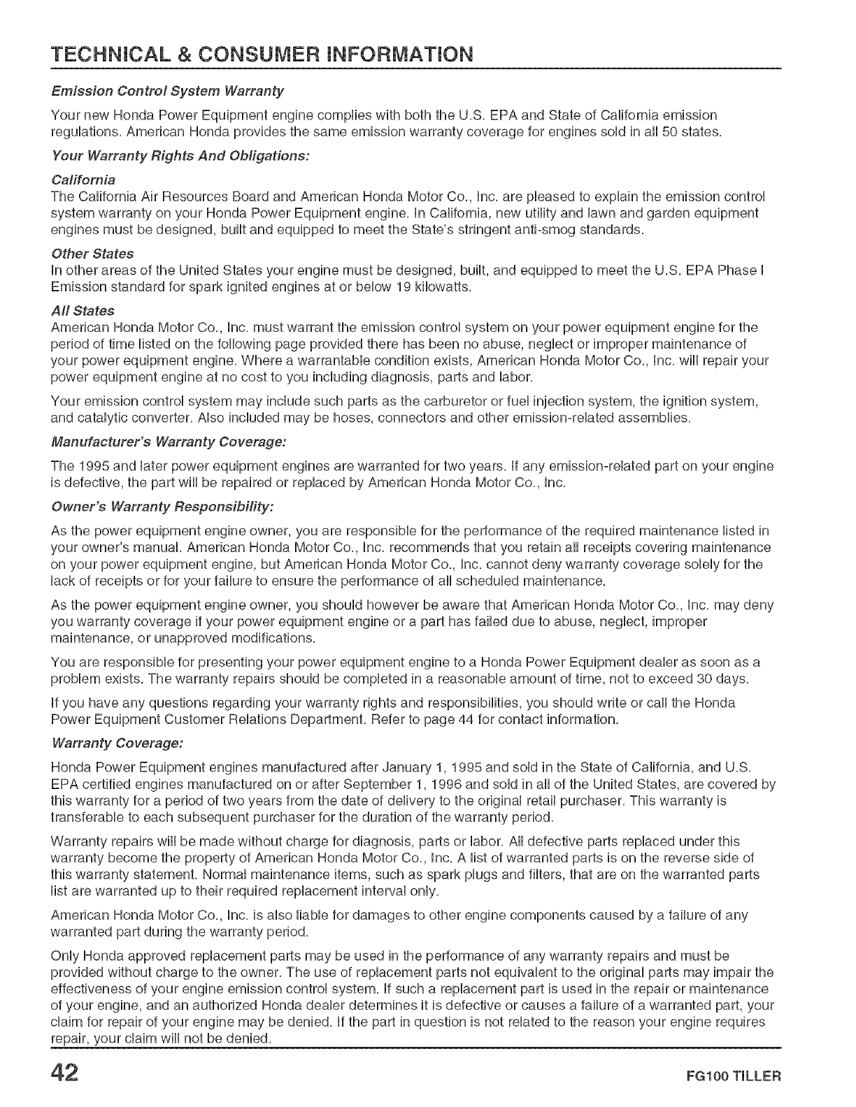 Congratulations on your selection of a Honda Harmony FG100 Tiller. We are certain you will be pleased
