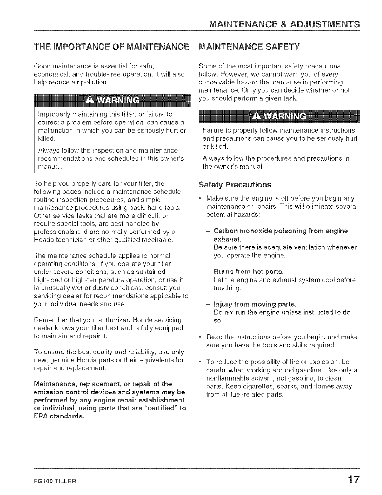 MAINTENANCE & ADJUSTMENTS ............... 17