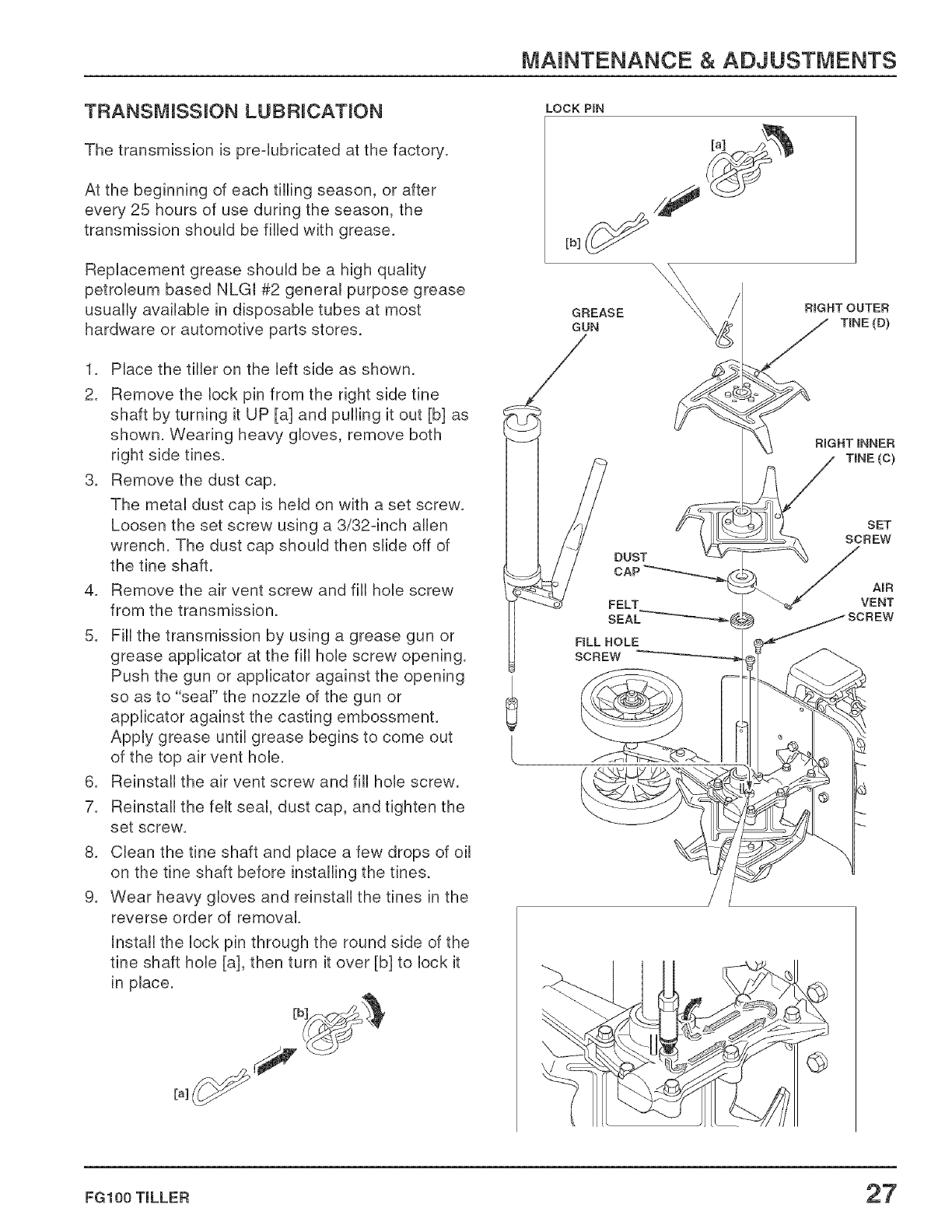 Transmission lubricant Type Grease (NLGi #2) See page 27.