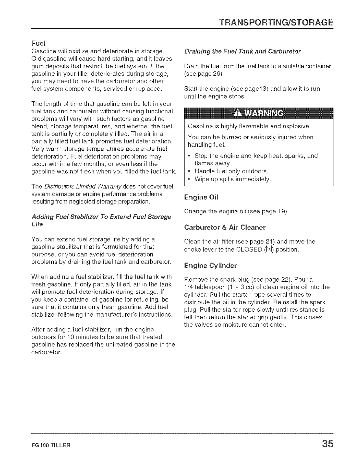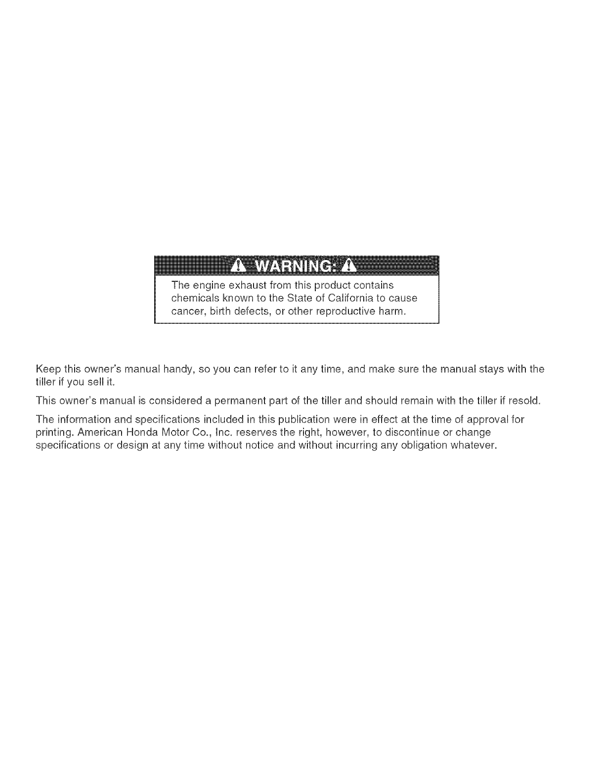This owner's manual is considered a permanent part of the tiller and should remain with the tiller if resold.