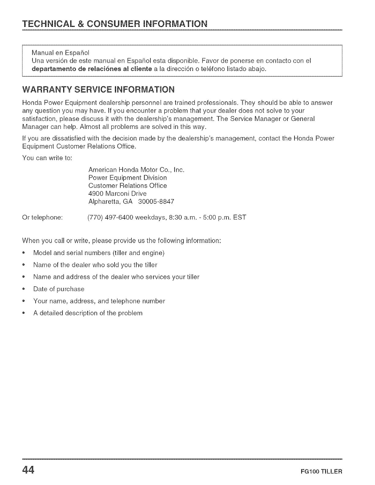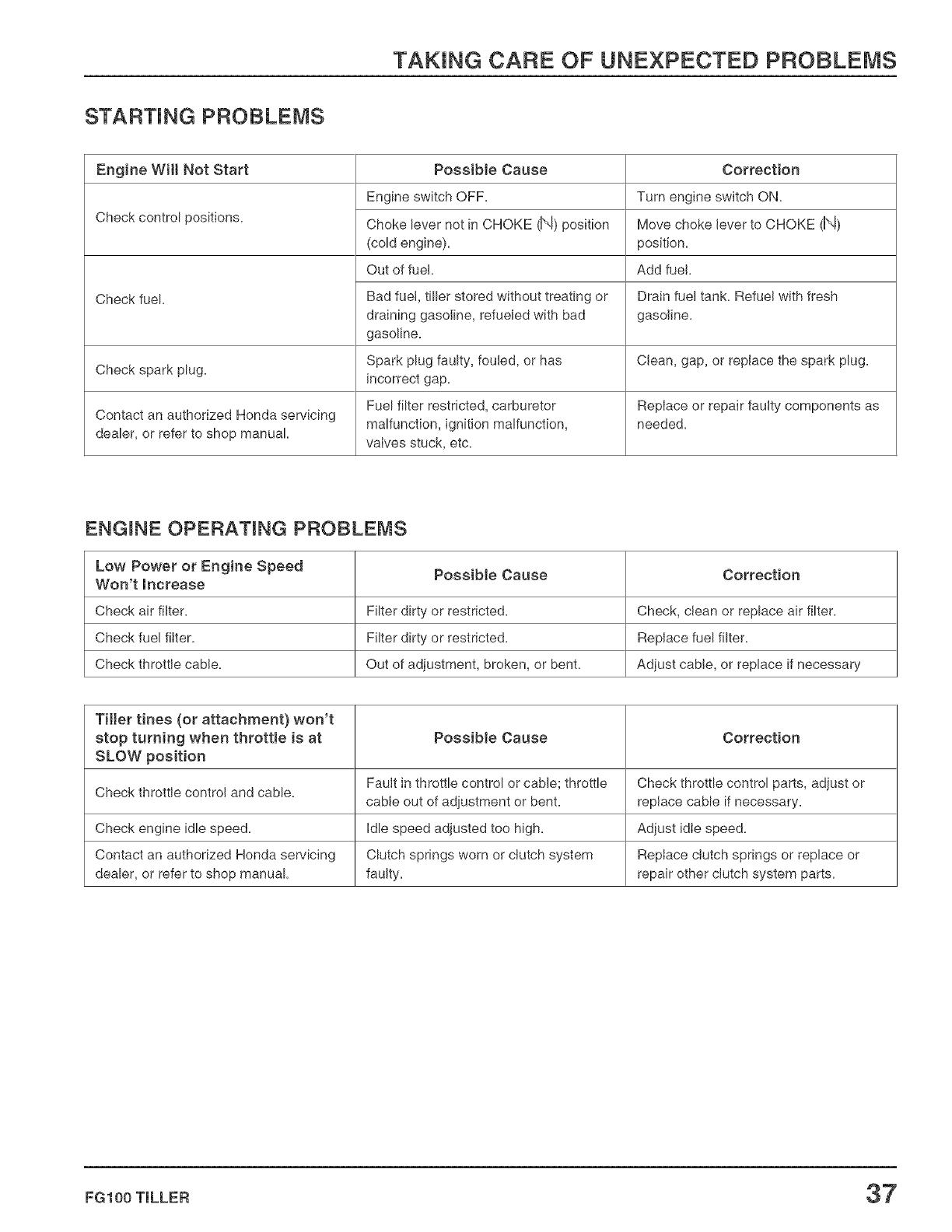 is specially trained in servicing Honda tillers. Your Honda servicing dealer is dedicated to your satisfaction