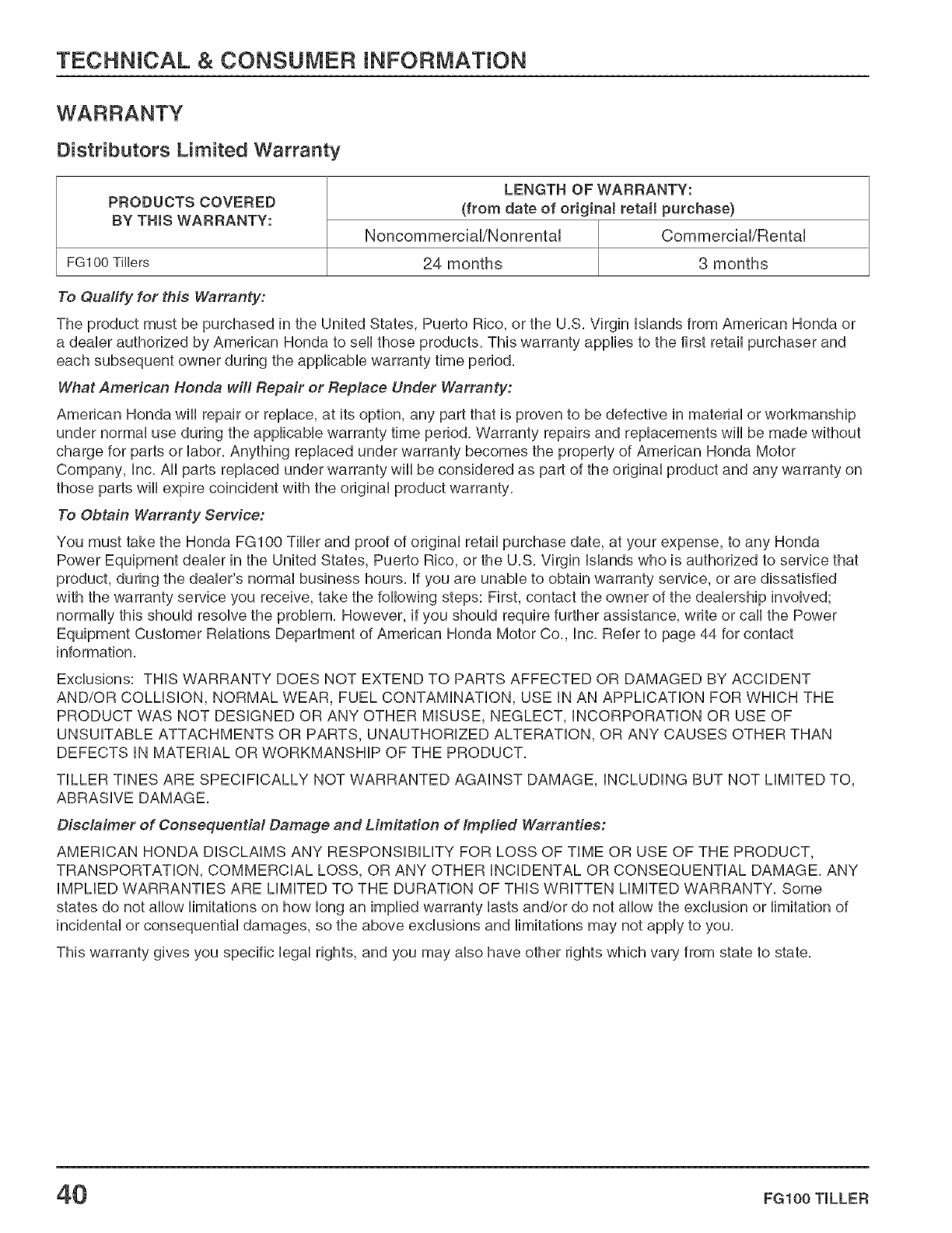 We suggest you read the Distributor's Limited Warranty (Page 40) to fully understand its coverage and