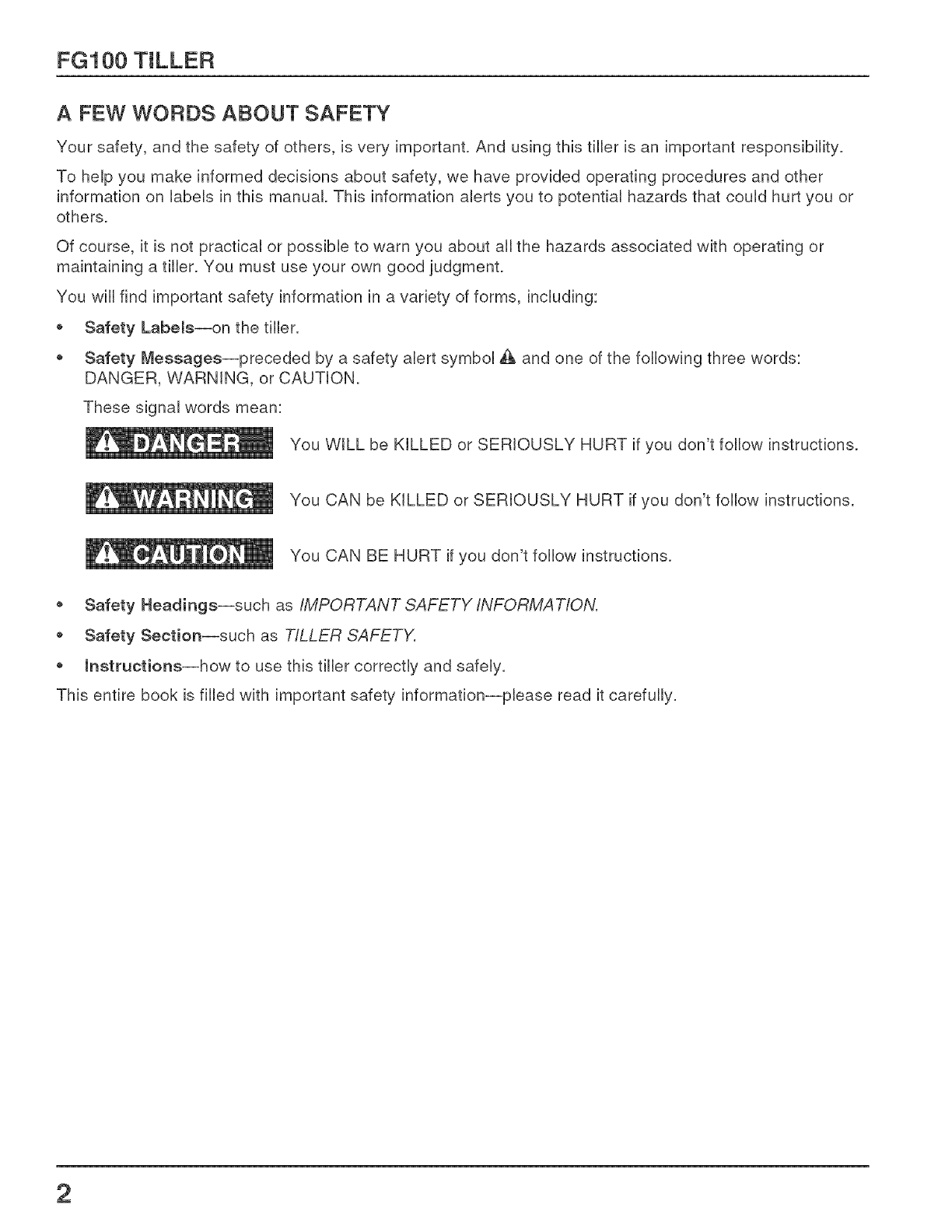 intended to help you avoid damage to your tiller, other property, or the environment.