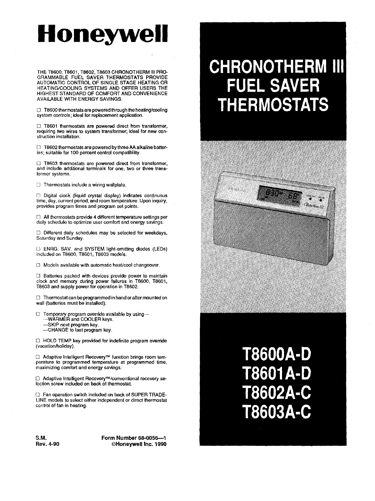THE T8600, T8601, T8602, T8603 CHRONOTHERM III PRO-