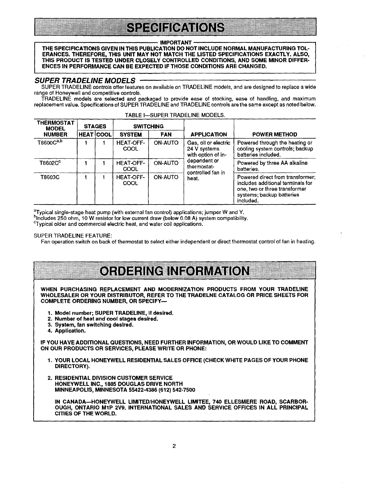replacement value. Specifications of SUPER TRADELINE and TRADELINE controls are the same except as noted below.