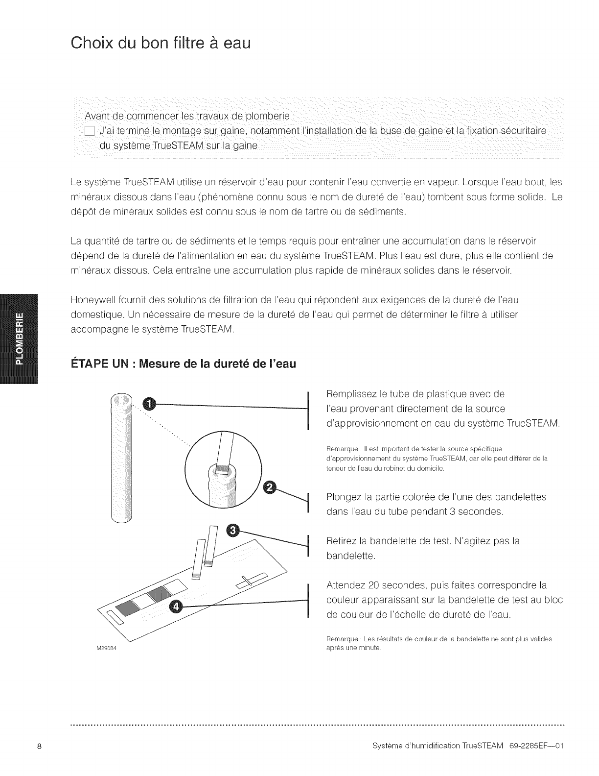 Si I'eau du domicile du proprietaire du systeme TrueSTEAM est dure, le systeme de filtration par osmose