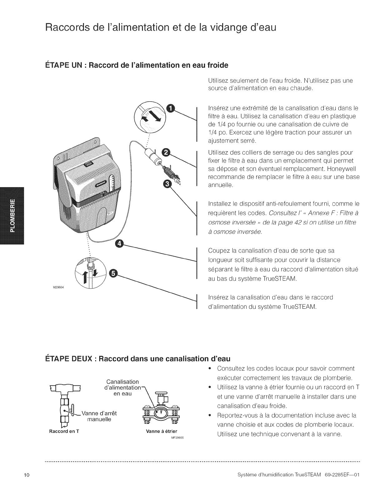 inversee de Honeywell (n° 50045947) dolt _tre installe sur la canalisation d'alimentation en eau,