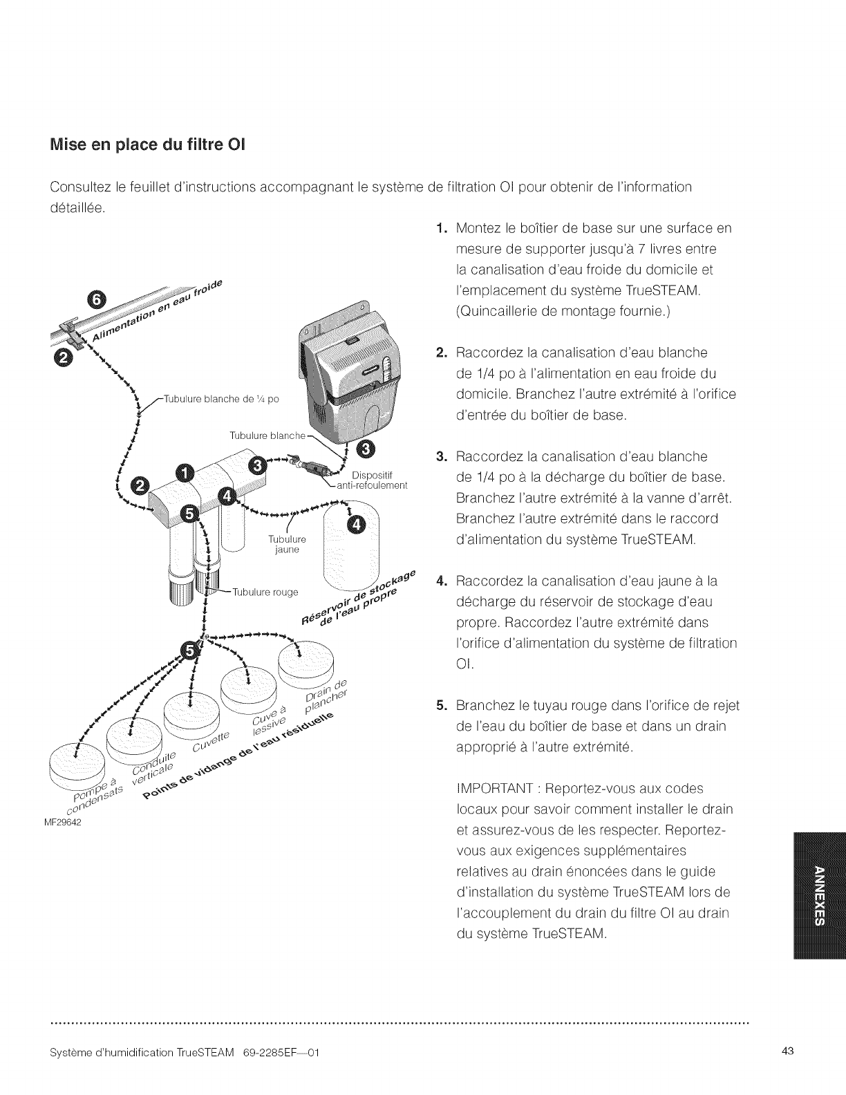 Consultez le feuillet d'instructions accompagnant le systeme de filtration OI pour obtenir de I'information