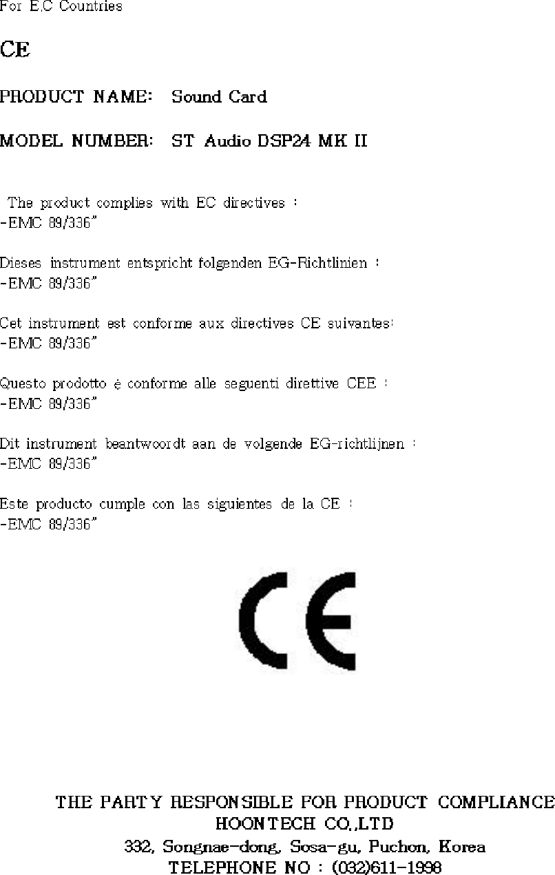 HOONTECH DSP24MKII Sound Card User Manual DSP24E