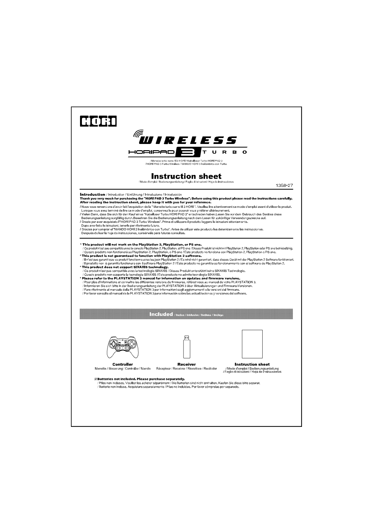 HORI HP3-1358A WIRELESS HORI PAD 3 TURBO User Manual