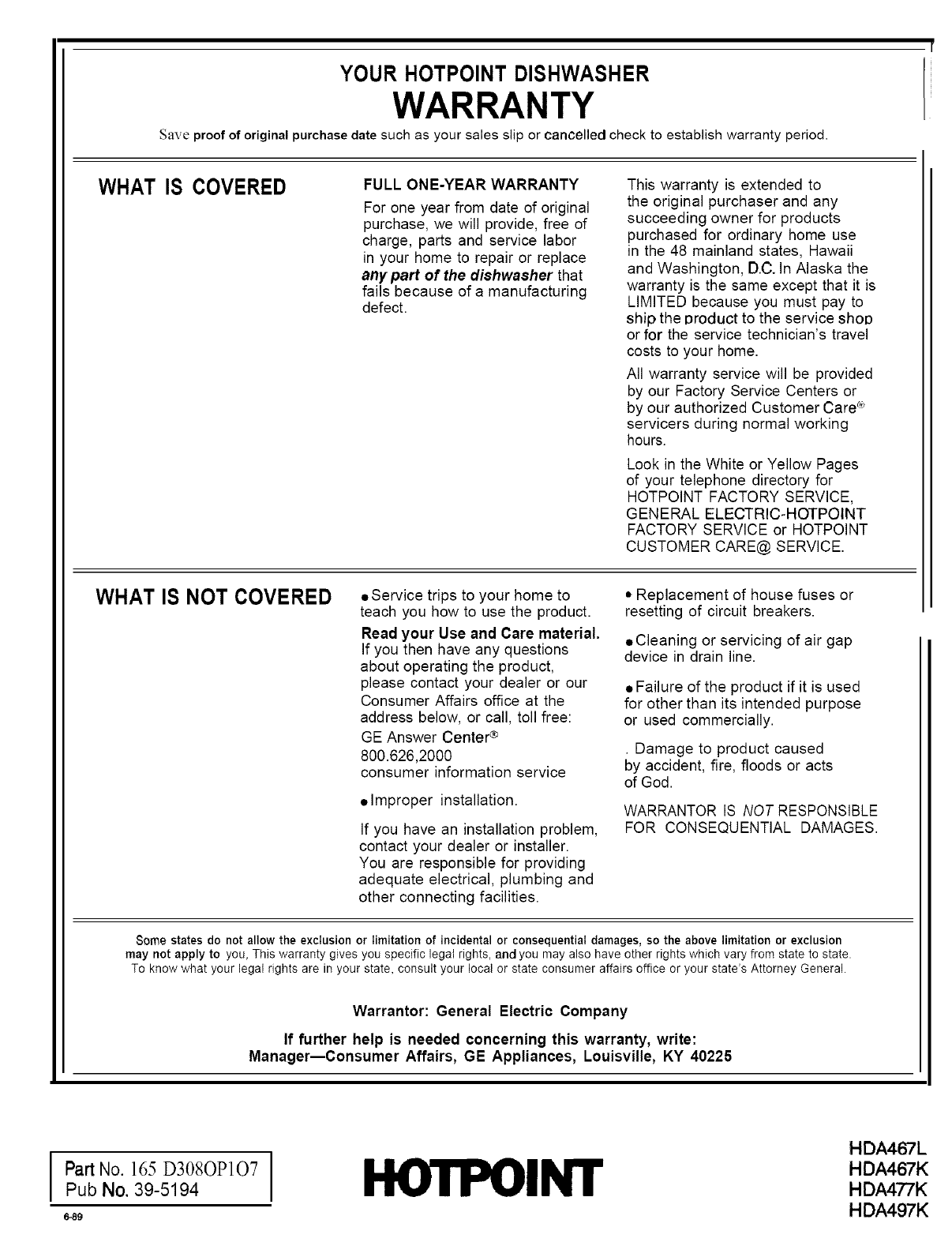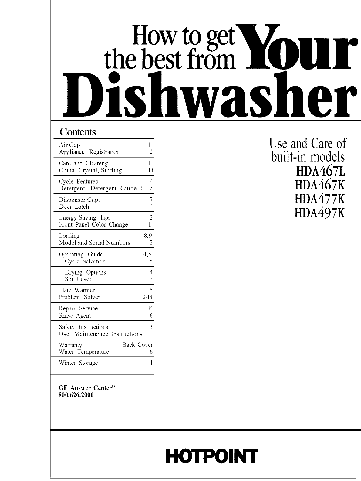 User Manual: HOTPOINT HOTPOINT Dishwasher Manual HOTPOINT Dishwasher Owner's Manual, HOTPOINT Dishwasher installation guides
