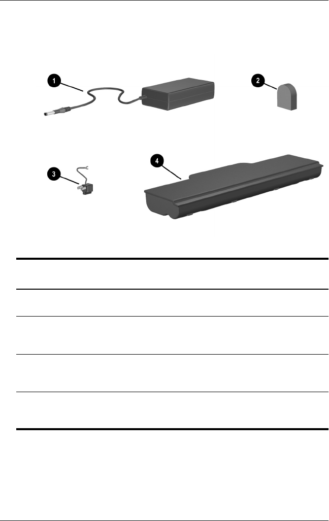 Identification de l'adaptateur secteur, du cordon d'alimentation et