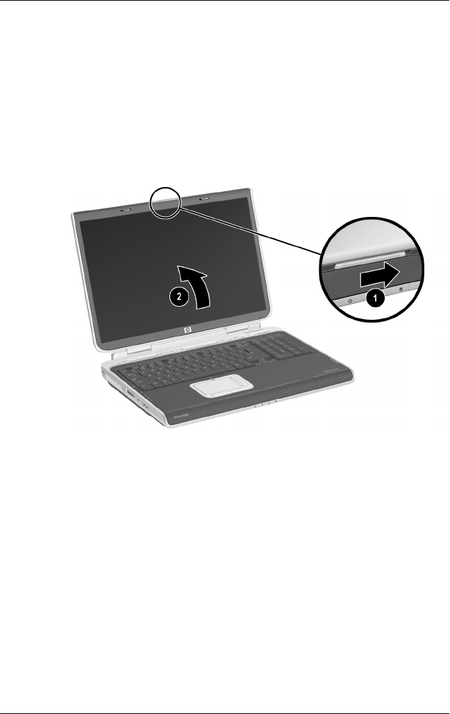 2. Actionnez le loquet d'ouverture de l'écran 1, puis soulevez