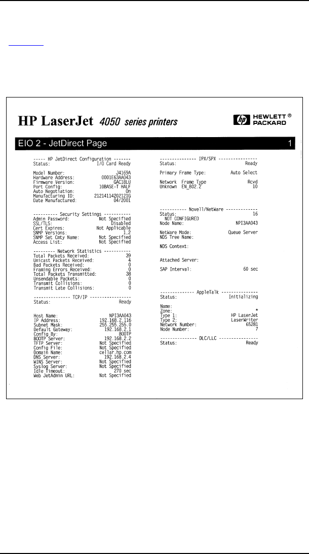 - 2. eljárás: A HPJetdirect konfigurációs oldal kinyomtatása