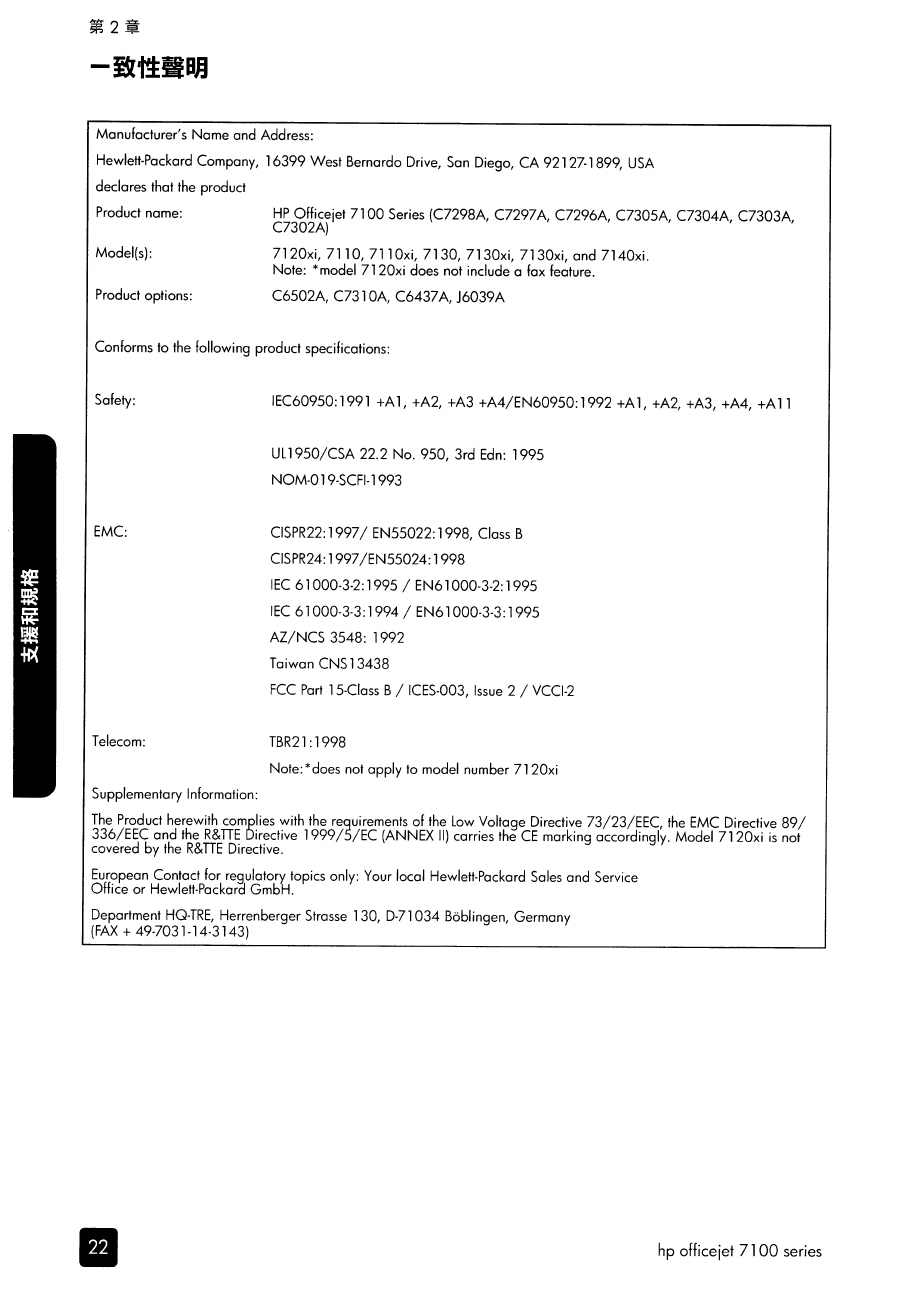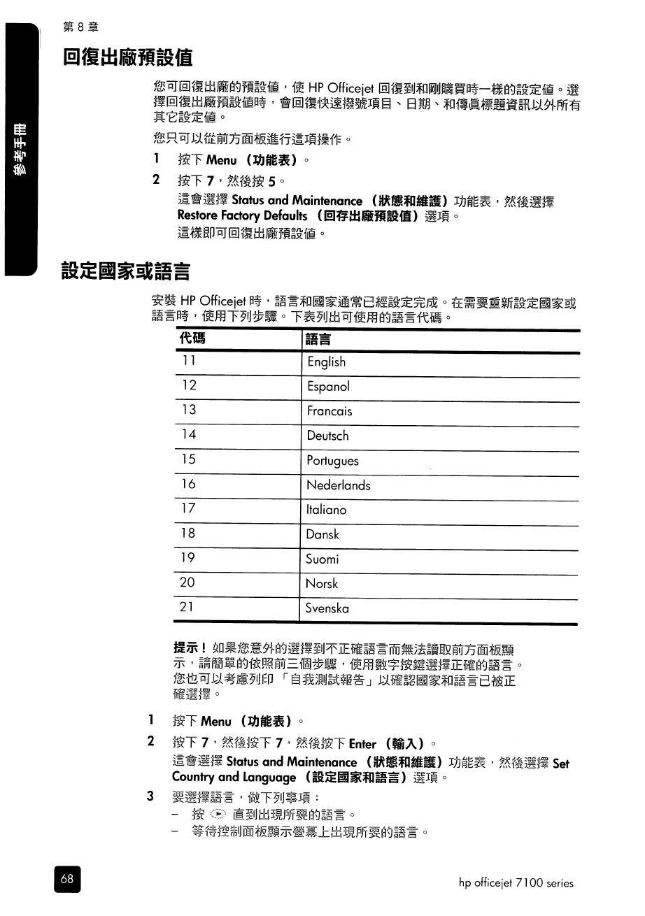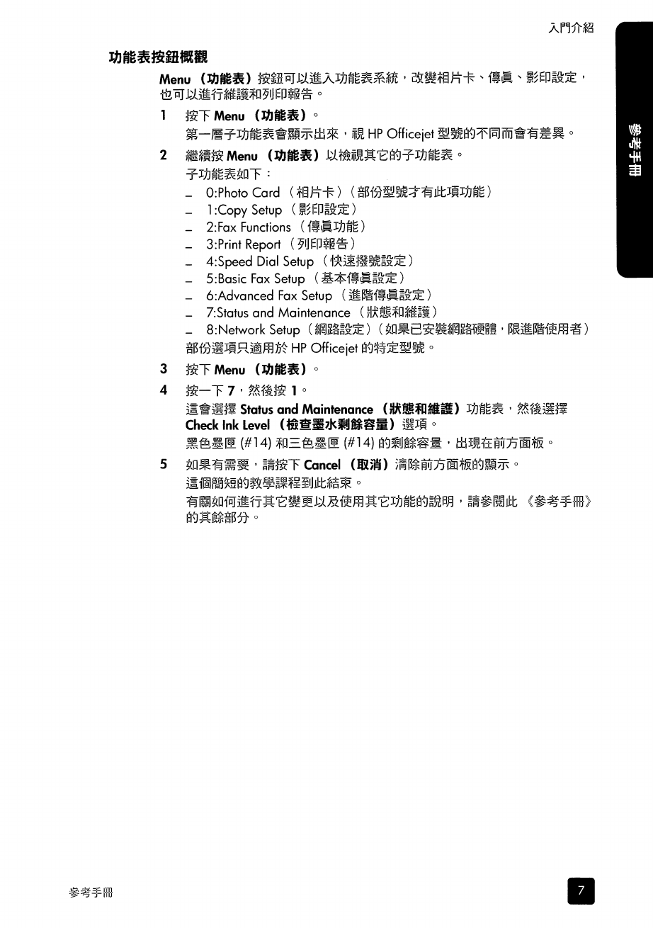 HP Office Jet 7130/7140xi 中文參考手冊 C00070534