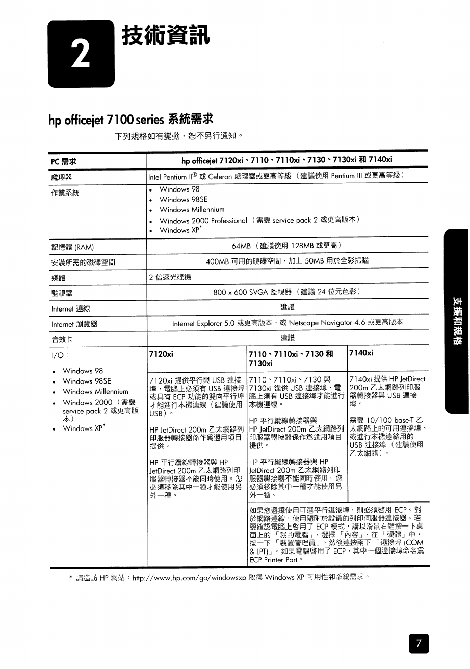 使用手册: HP OfficeJet 7130/7140xi - 中文參考手冊