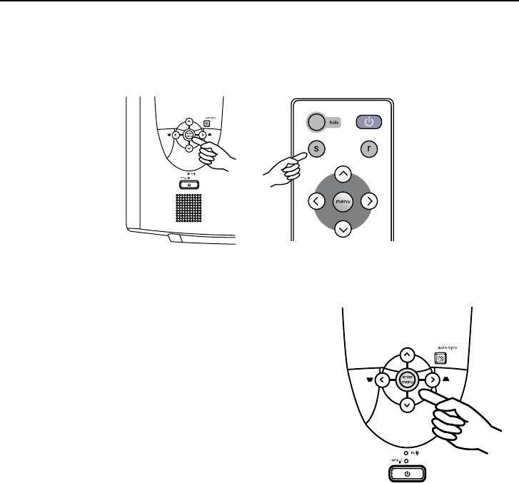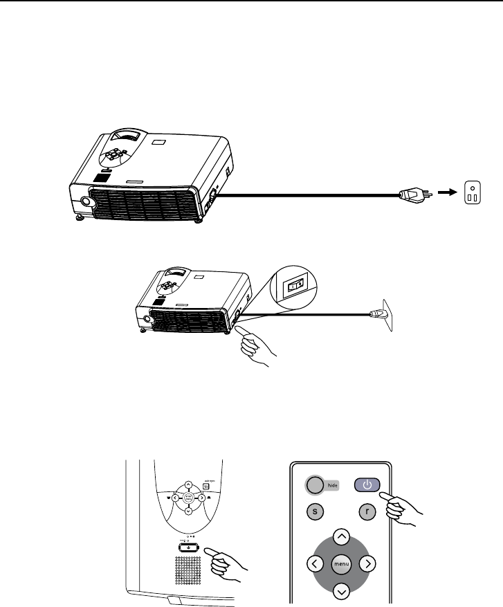 - 1. Sæt den ene ende af strømkablet i projektoren og den anden i en lysnetkontakt ivæggen.