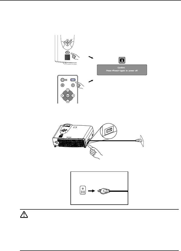- 1. Sluk for projektoren. Tag strømstikket ud af lysnetkontakten og projektoren.