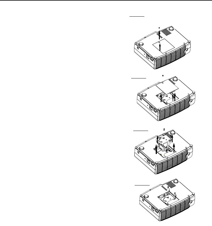 - 4. Udskift pæren med en ny. Indsæt den i projektoren, og stram skruerne helt. Løse skruer kan for...